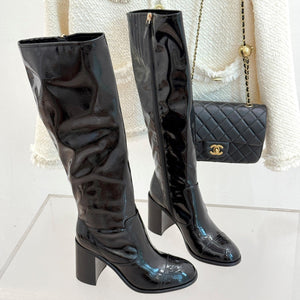 CC Classic Long Boots Block Heel 90mm Black Patent Leather 465395