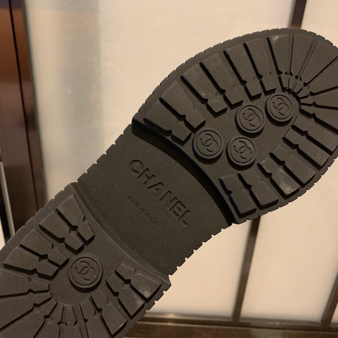 CC Combat Boots 50mm In Black Glossy Calfskin Quilted And Lycra Fabric 940073