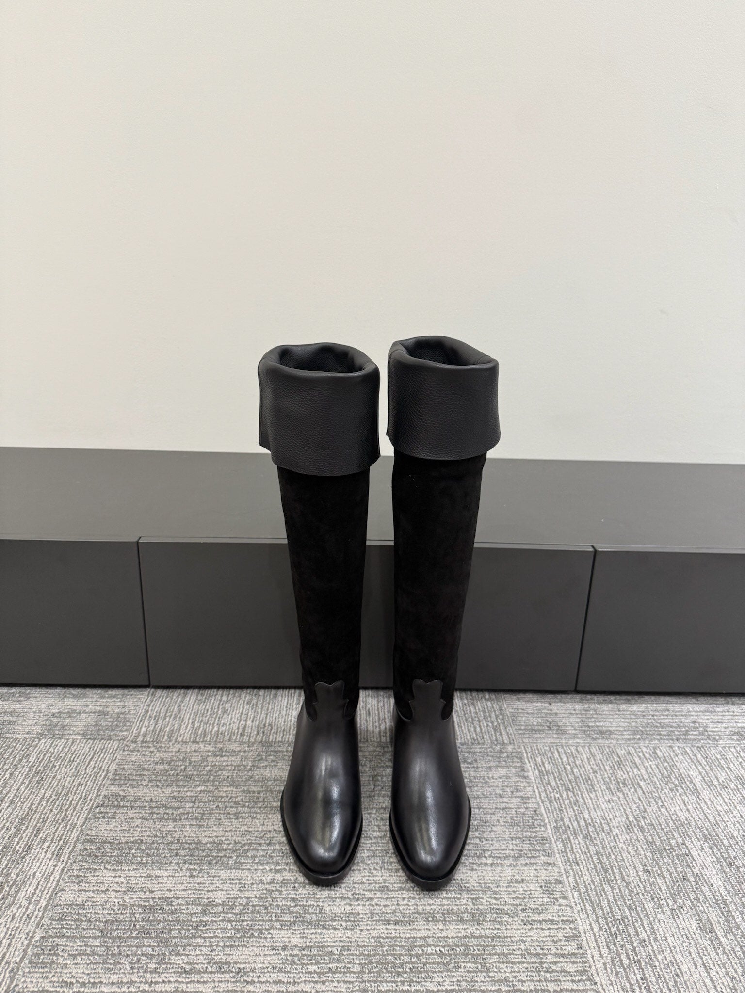 CC Métiers d’art Thigh Boots Black Suede Calfskin 417837