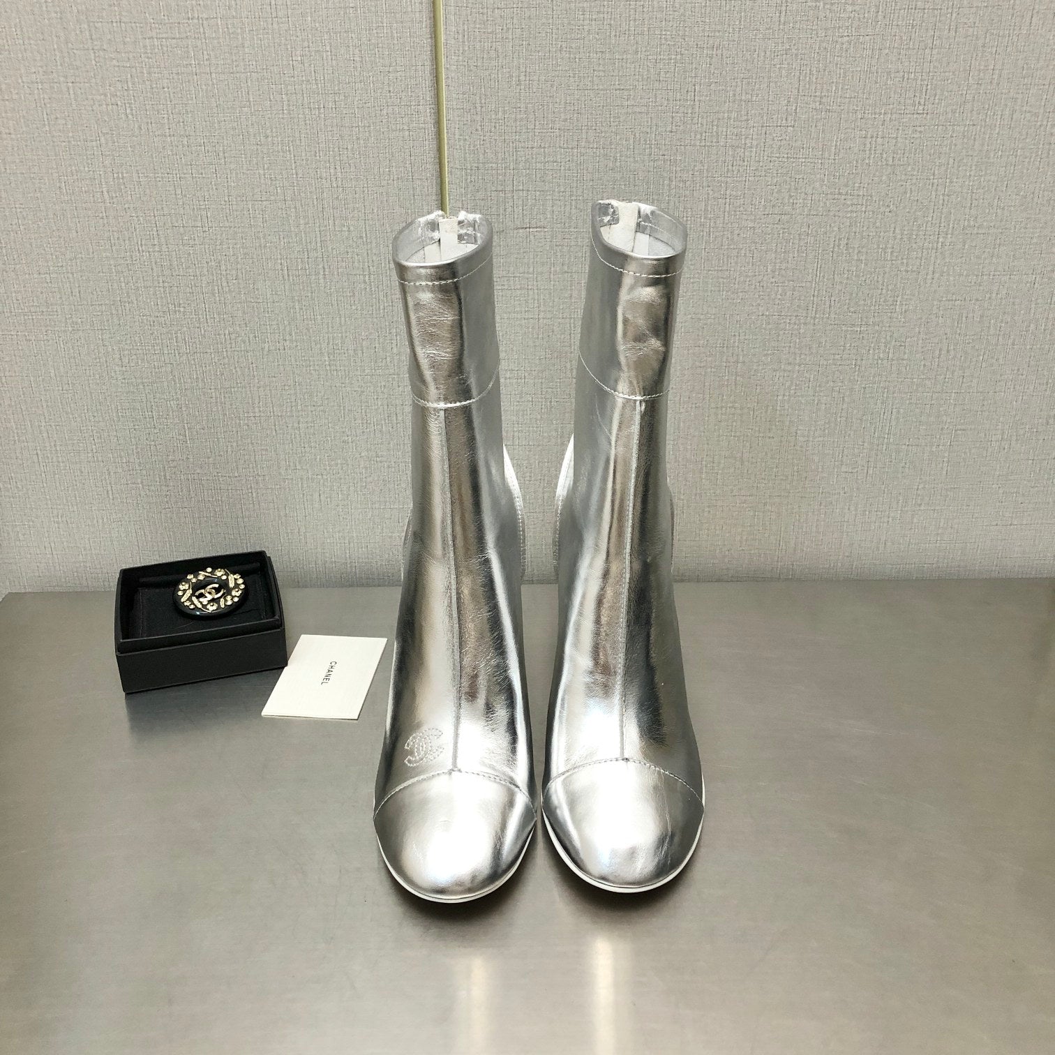 HIGH HEEL ANKLE BOOTS IN SILVER CALFSKIN