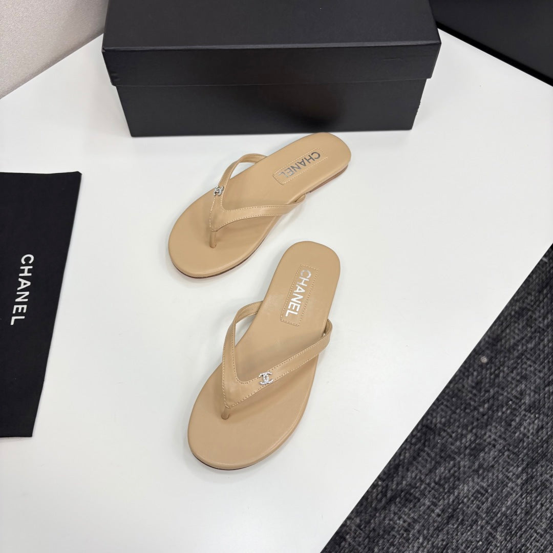 CC Crystal Logo Thong Sandal Beige Sheepskin 352476