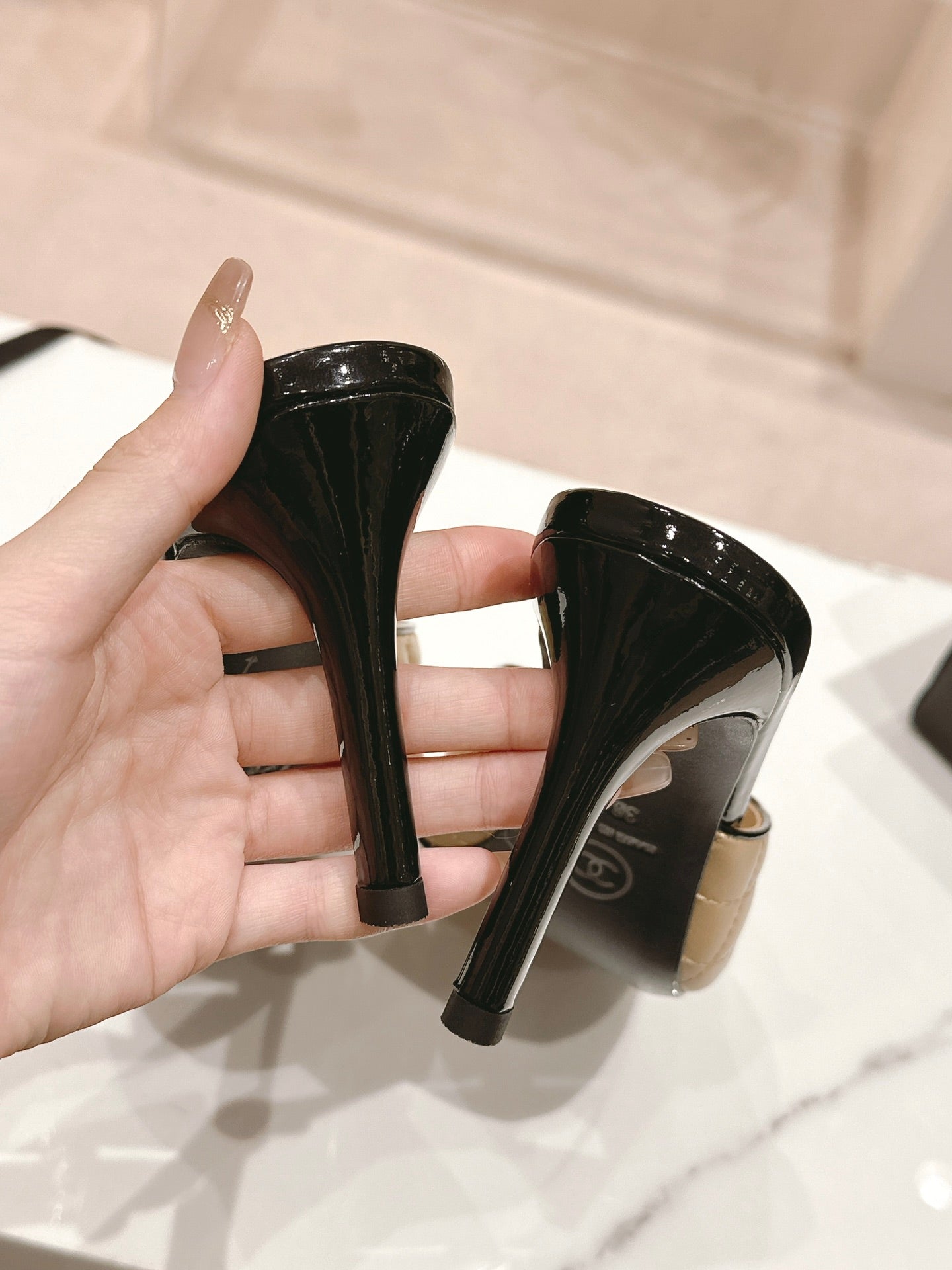 cc sandal flower 85 beige calfskin