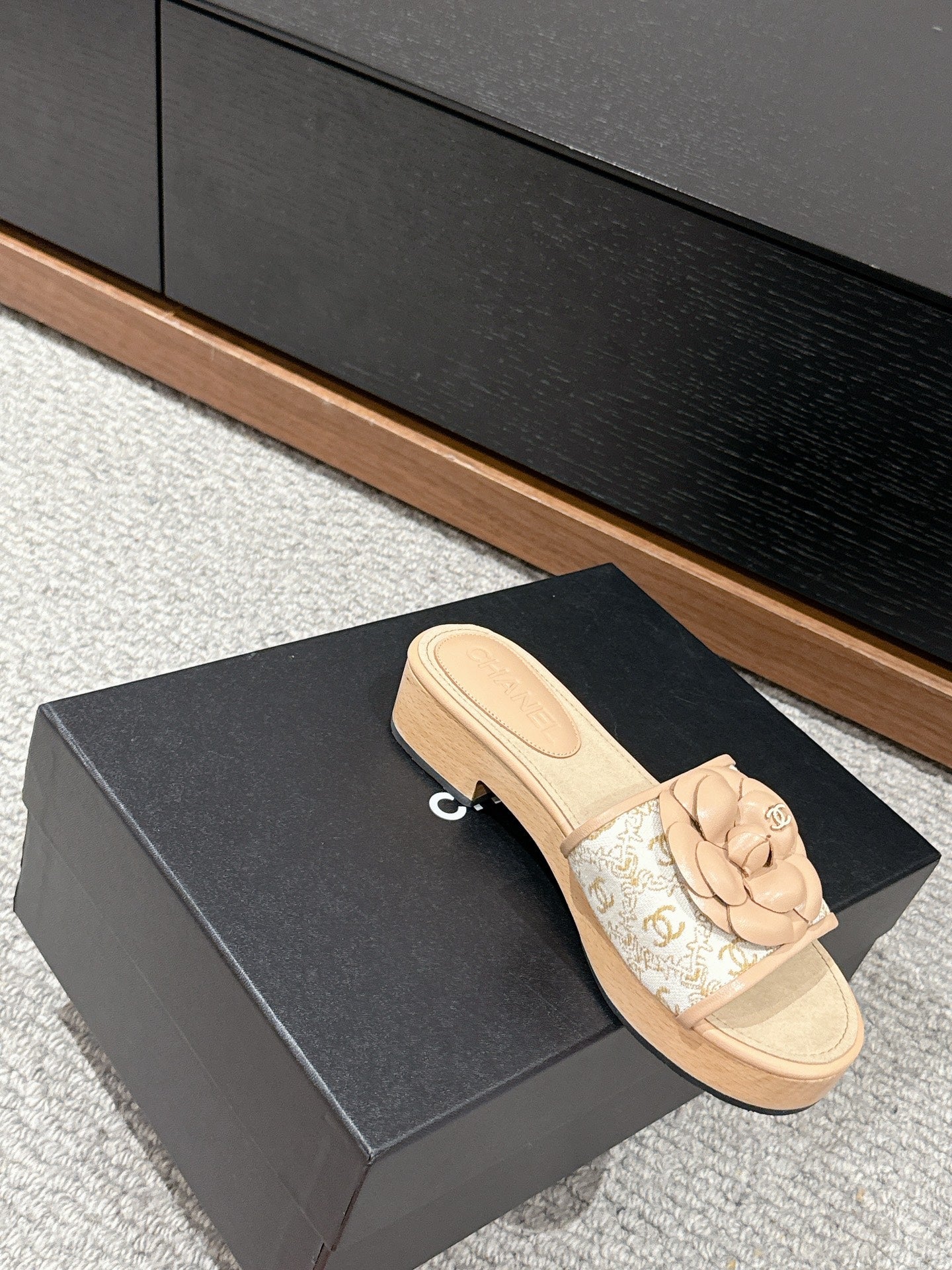 cc sandal flower white canvas beige calfskin