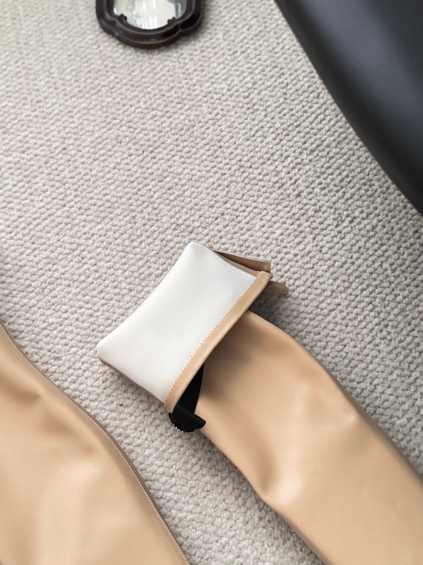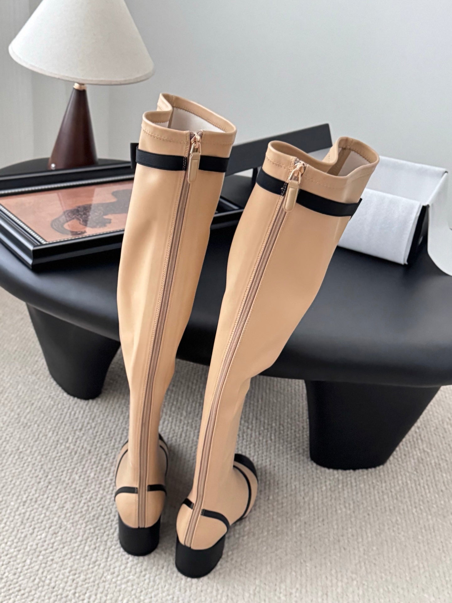 CC 25 Bowknot Stretch Boots Beige Sheepskin