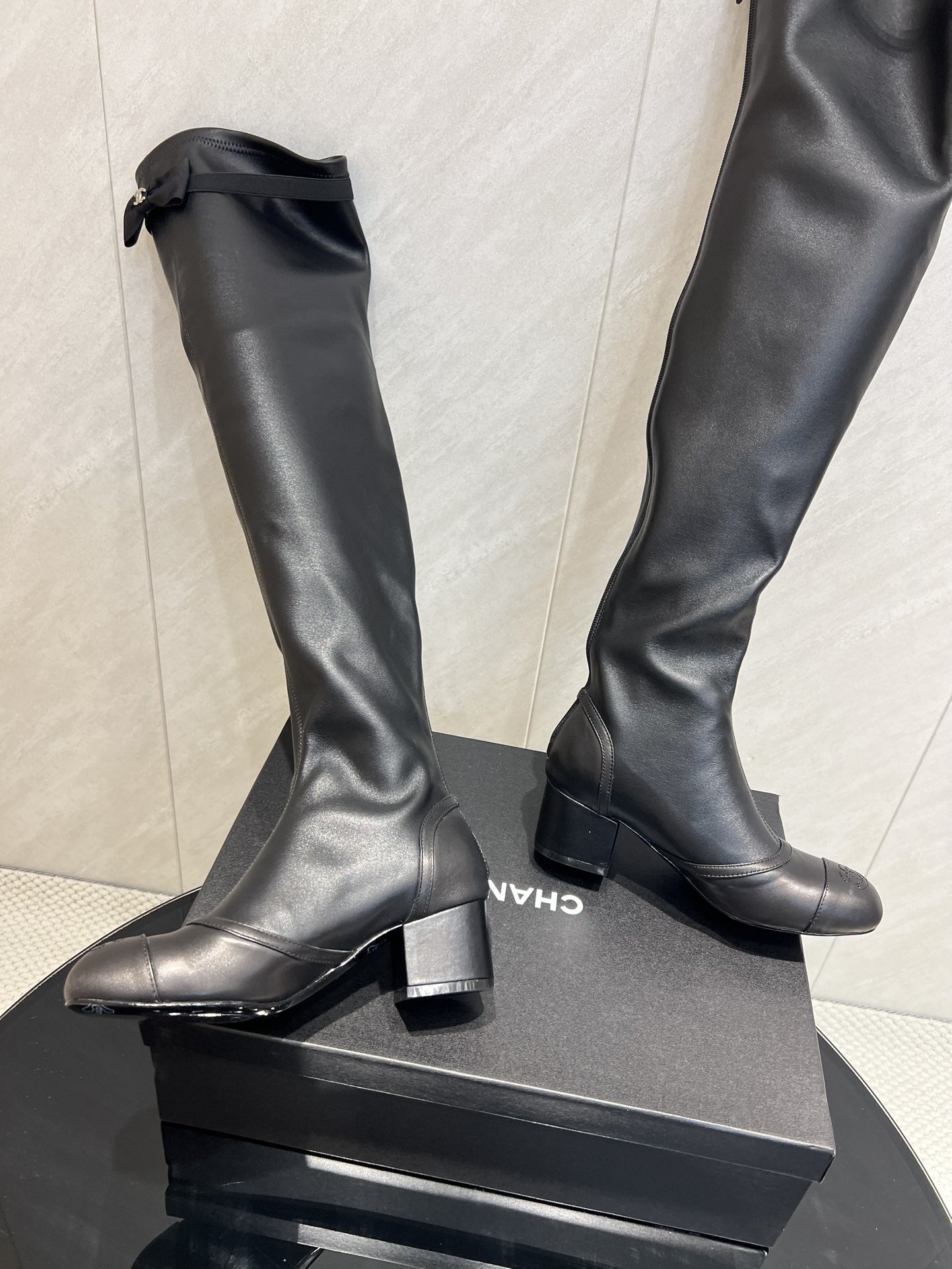 CC 25 Bowknot Stretch Boots Black Sheepskin 516420