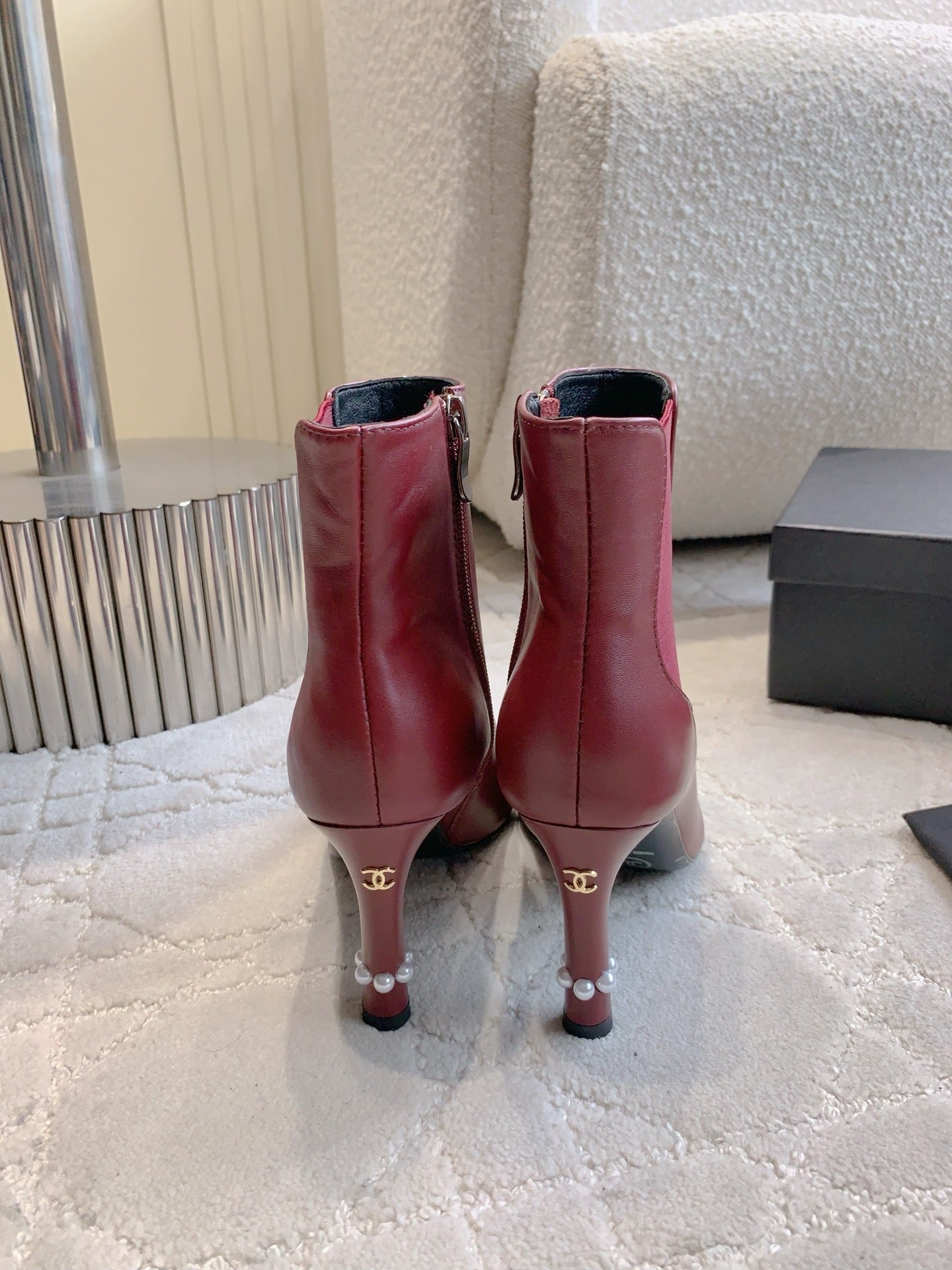 CC 25 Pearl Heel Boot Burgundy Black Calfskin 516654