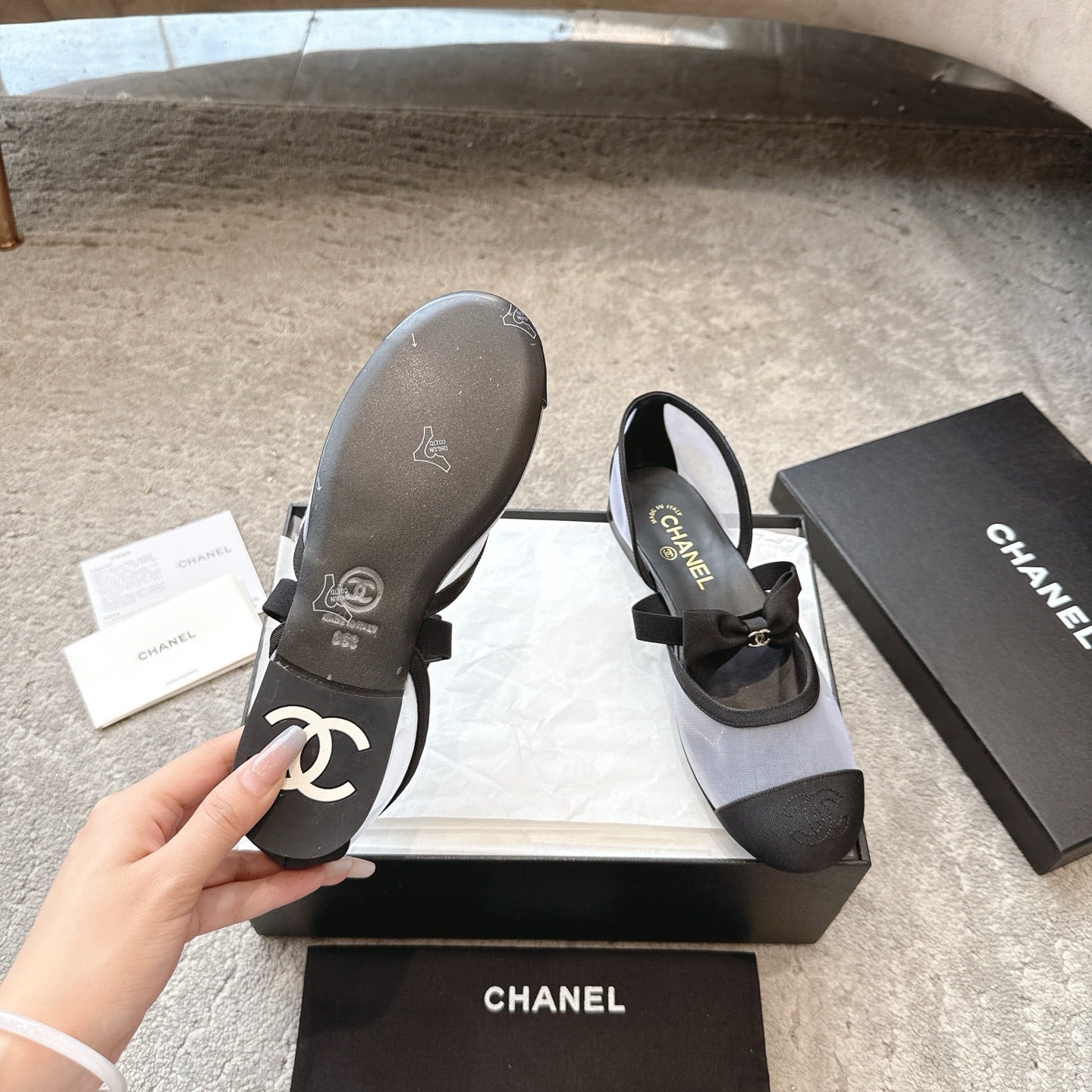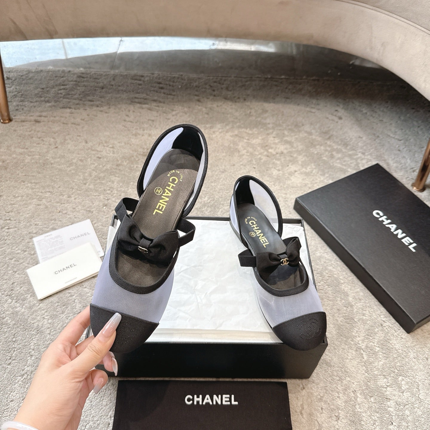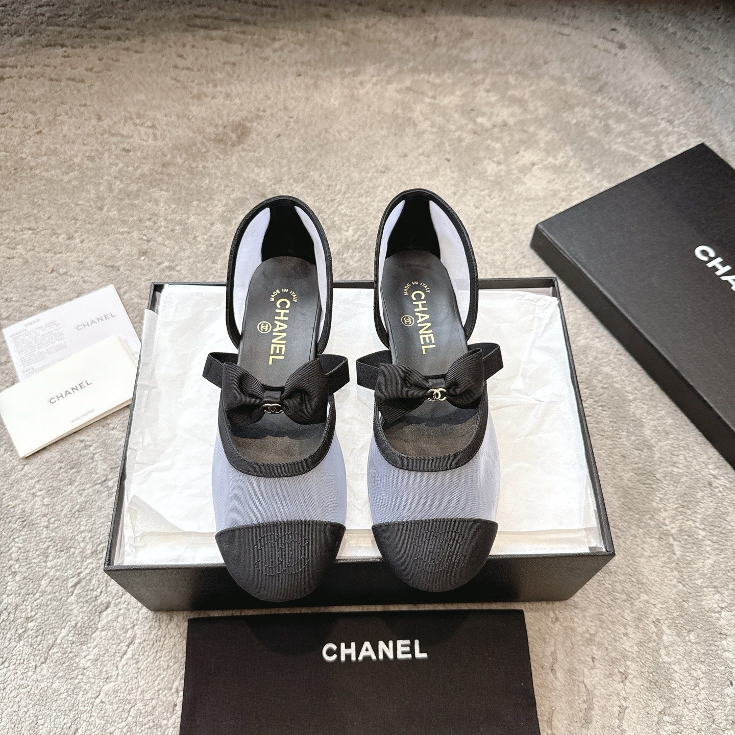 CC 25b Fall-Winter Mary Janes 15mm White Black Mesh & Grosgrain 415779