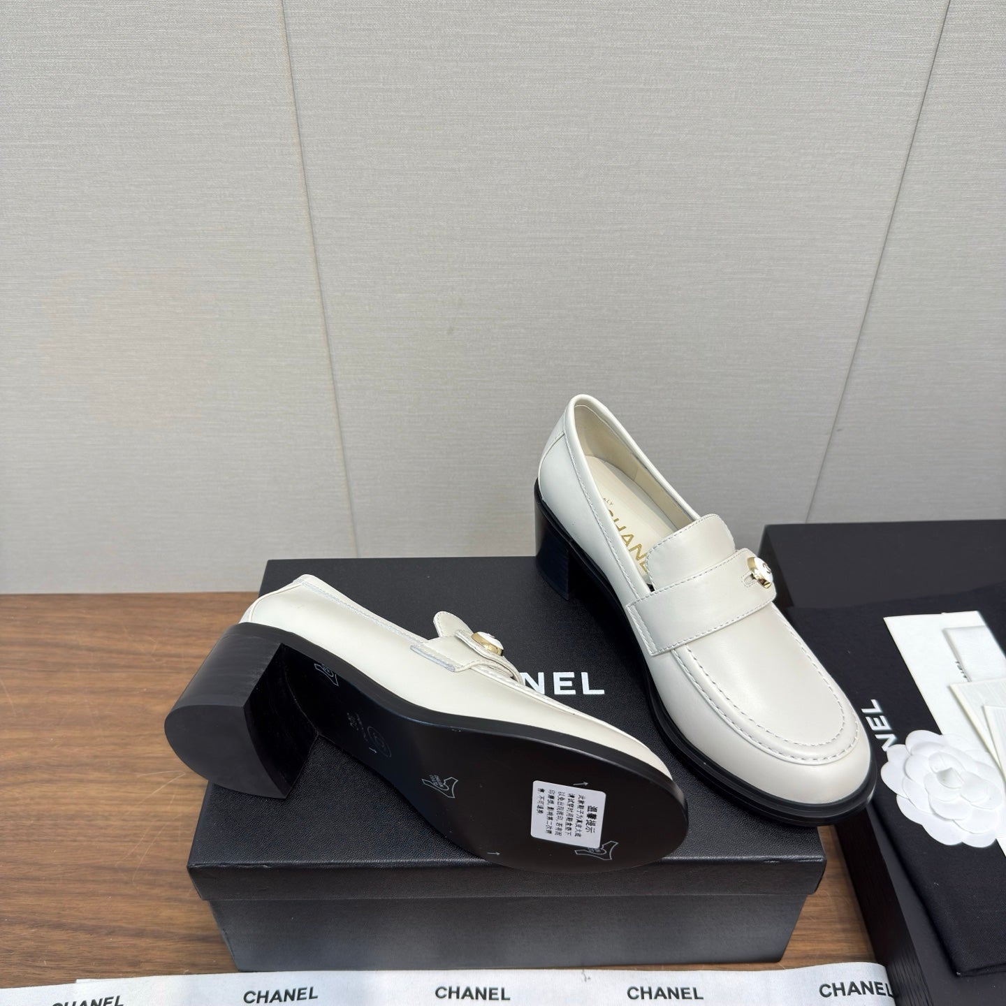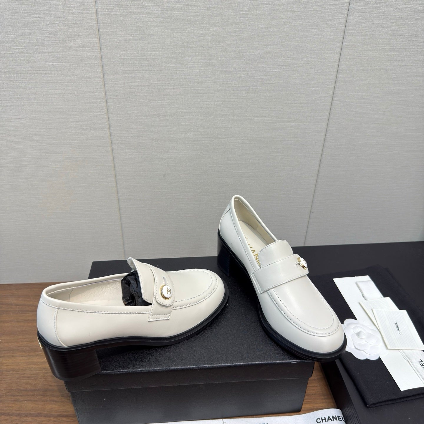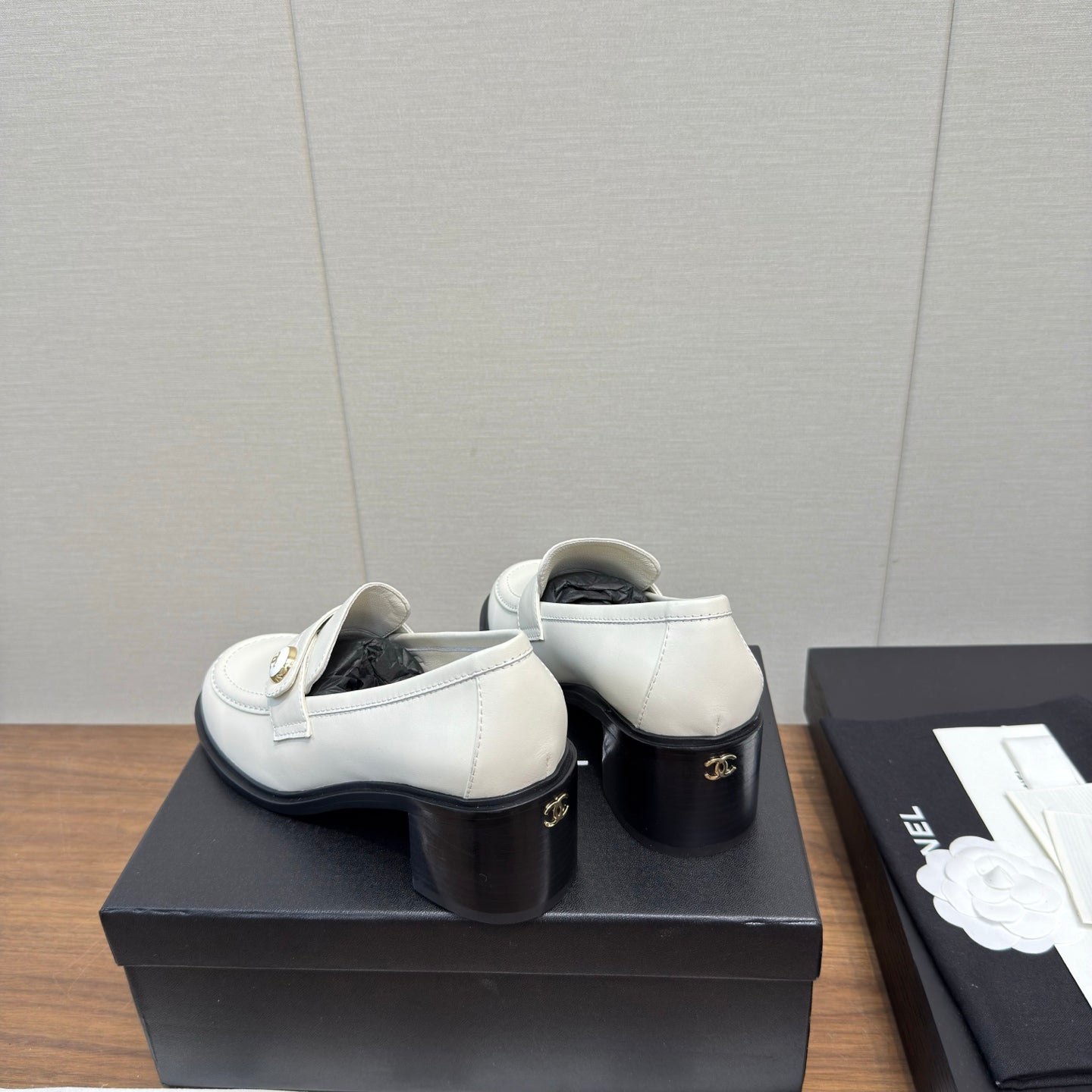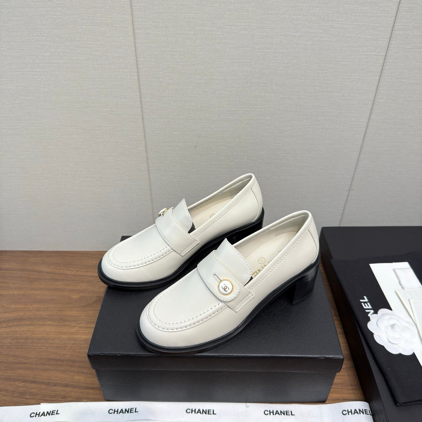 CC 25K Logo Button Loafers 35mm High Heel White Calfskin 517626