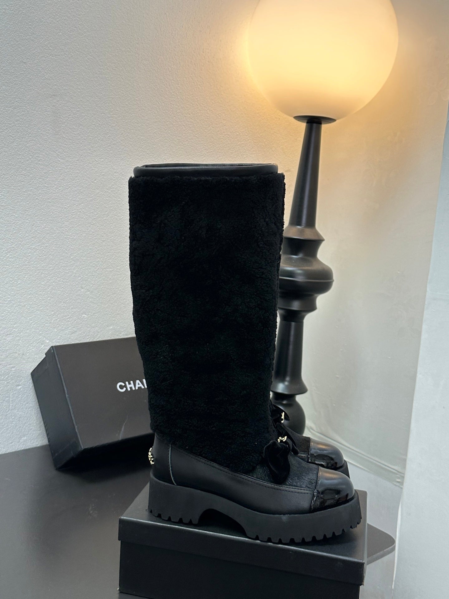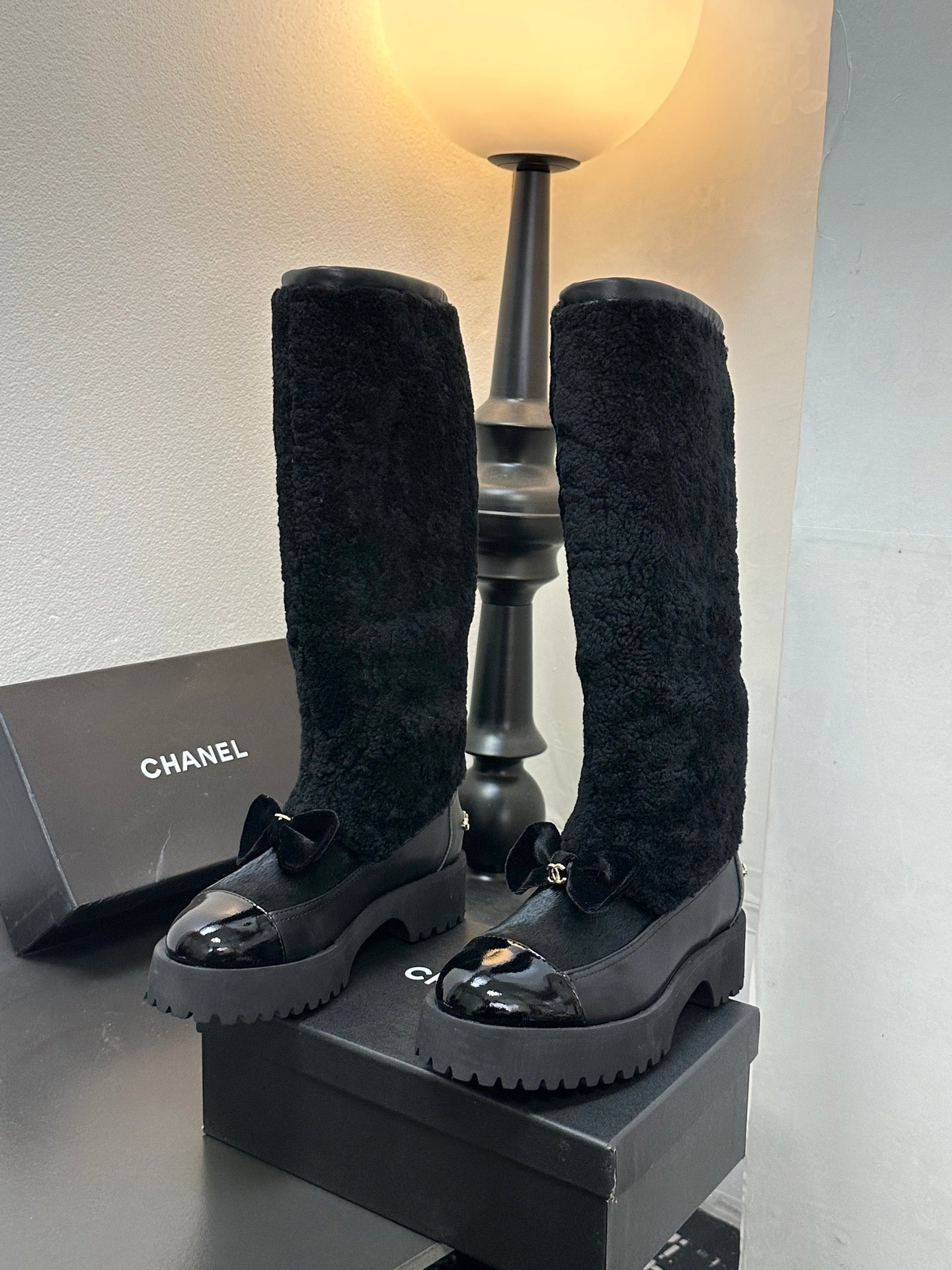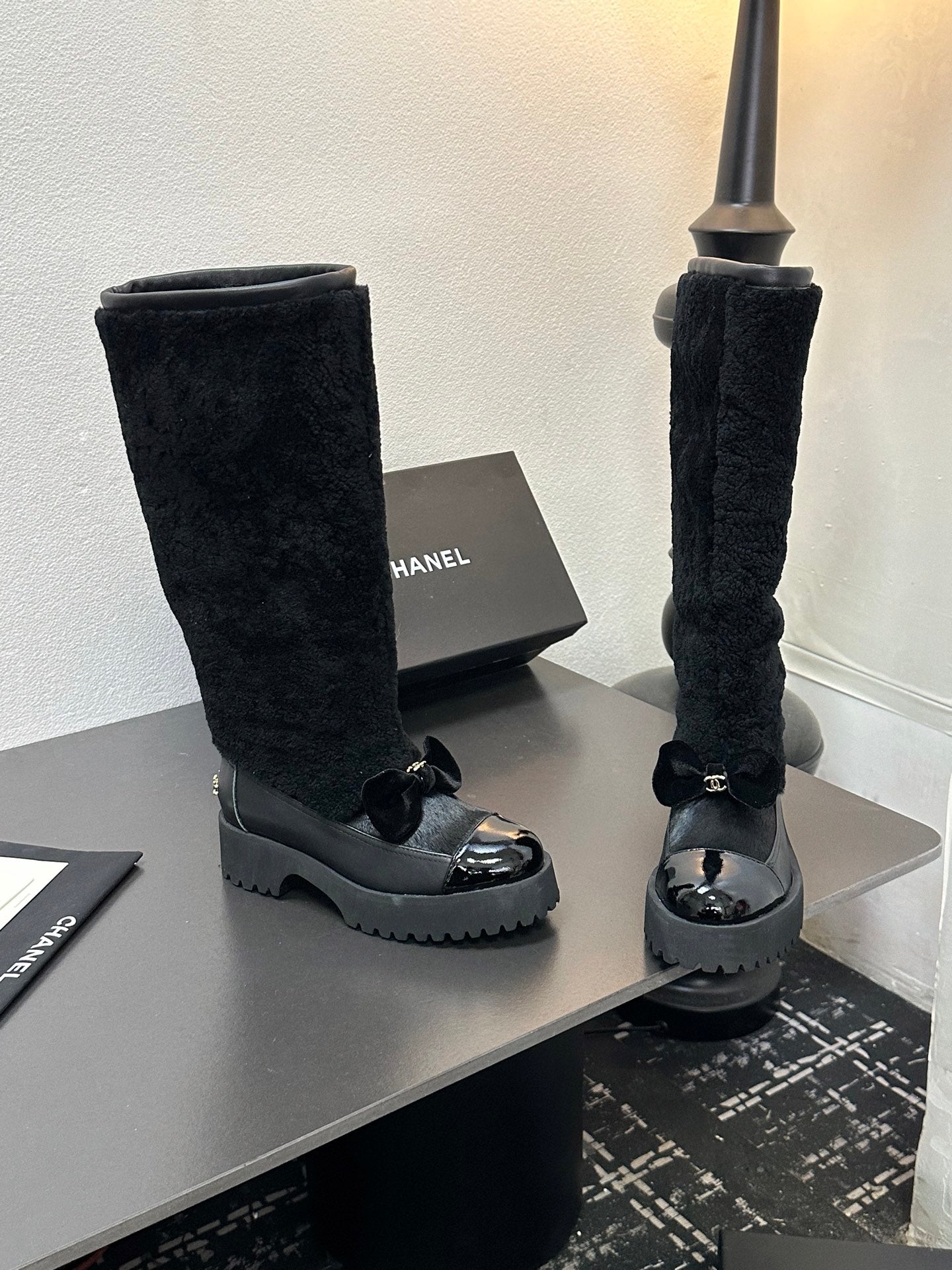 CC Coco Neige 2025/26 High Boots Black Shearling Lambskin Patent Leather 529339