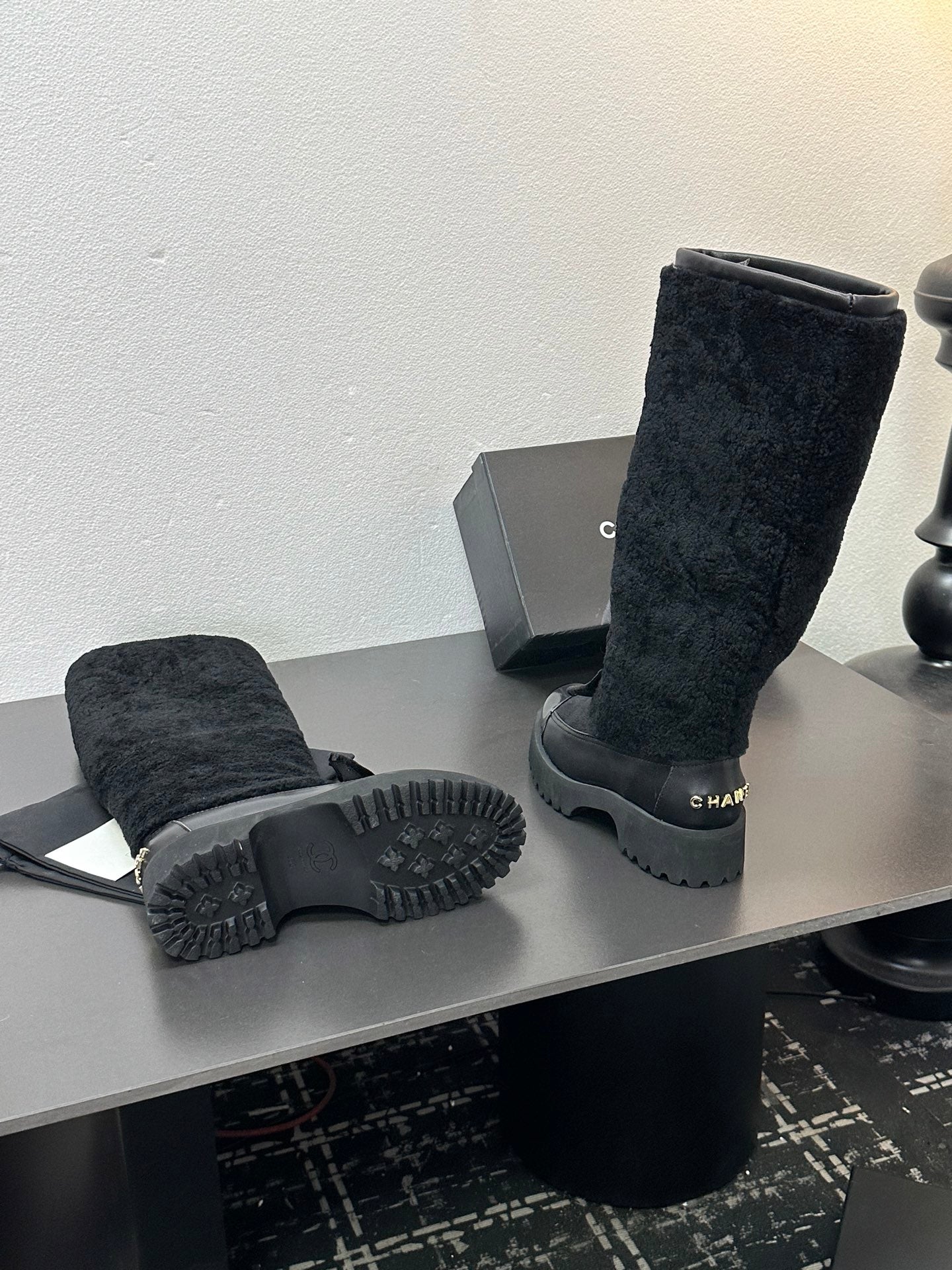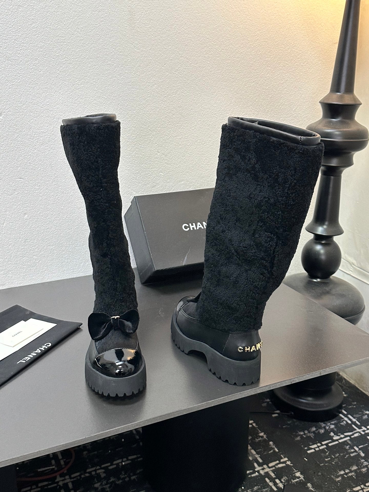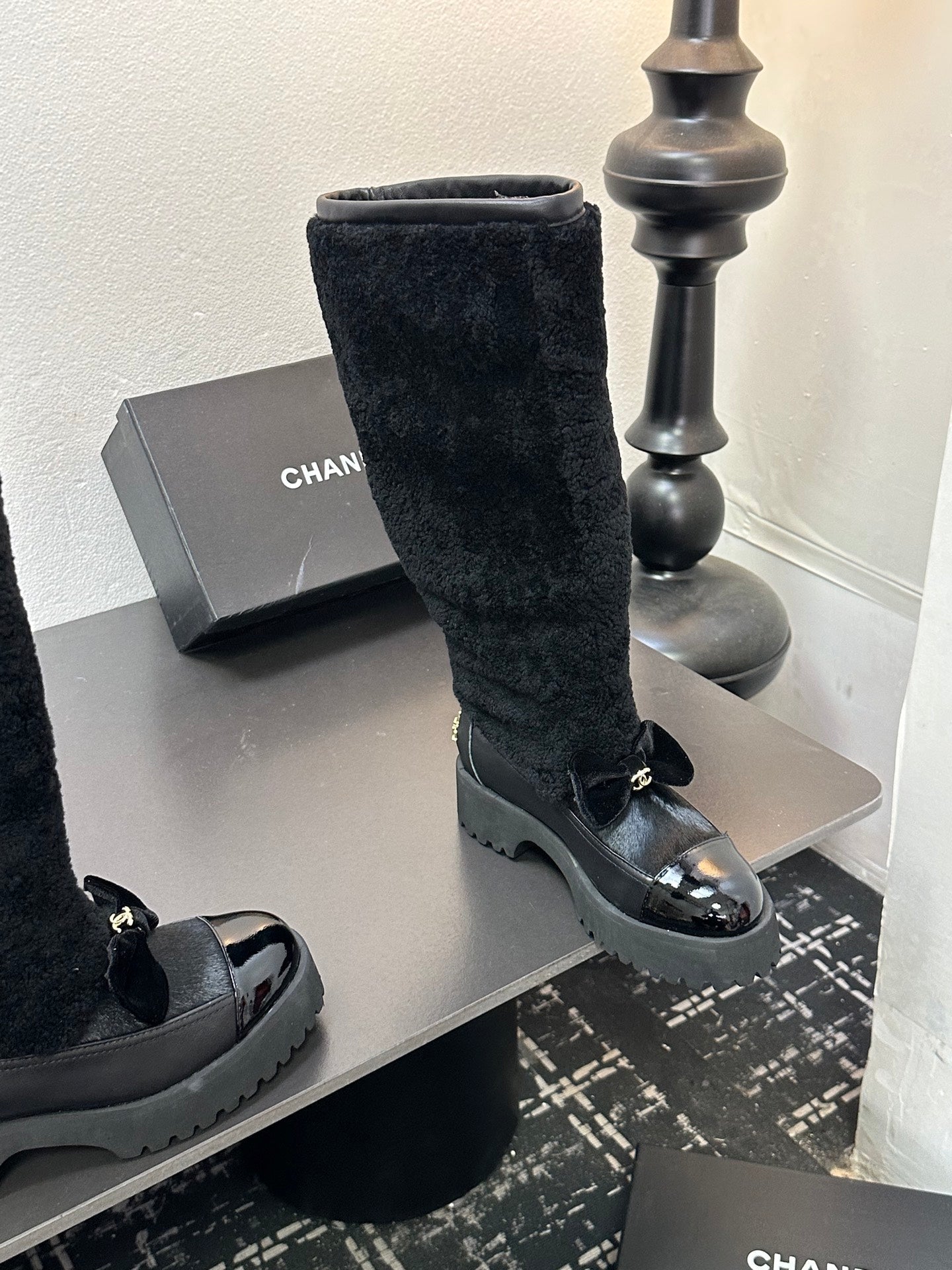CC Coco Neige 2025/26 High Boots Black Shearling Lambskin Patent Leather 529339