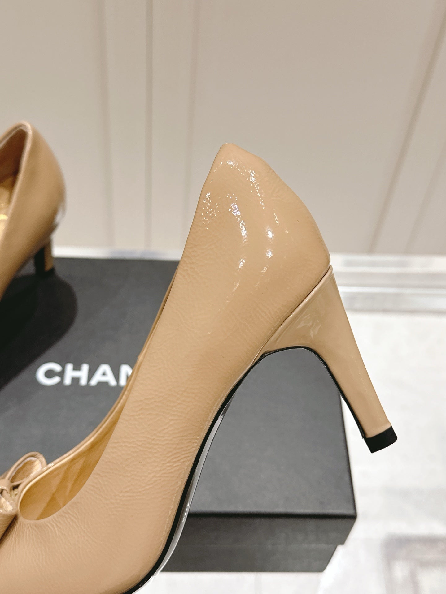 Chanel 25A Heel Pump Nude Patent Calfskin 393070