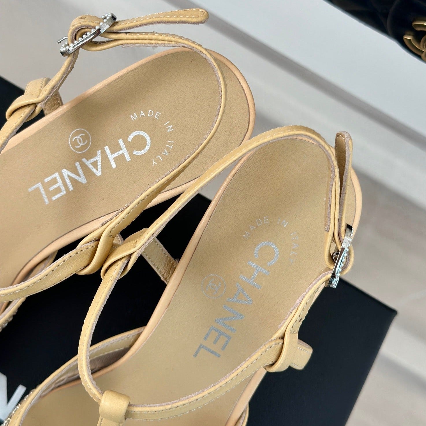 - Upper made of imported lambskin/crystals