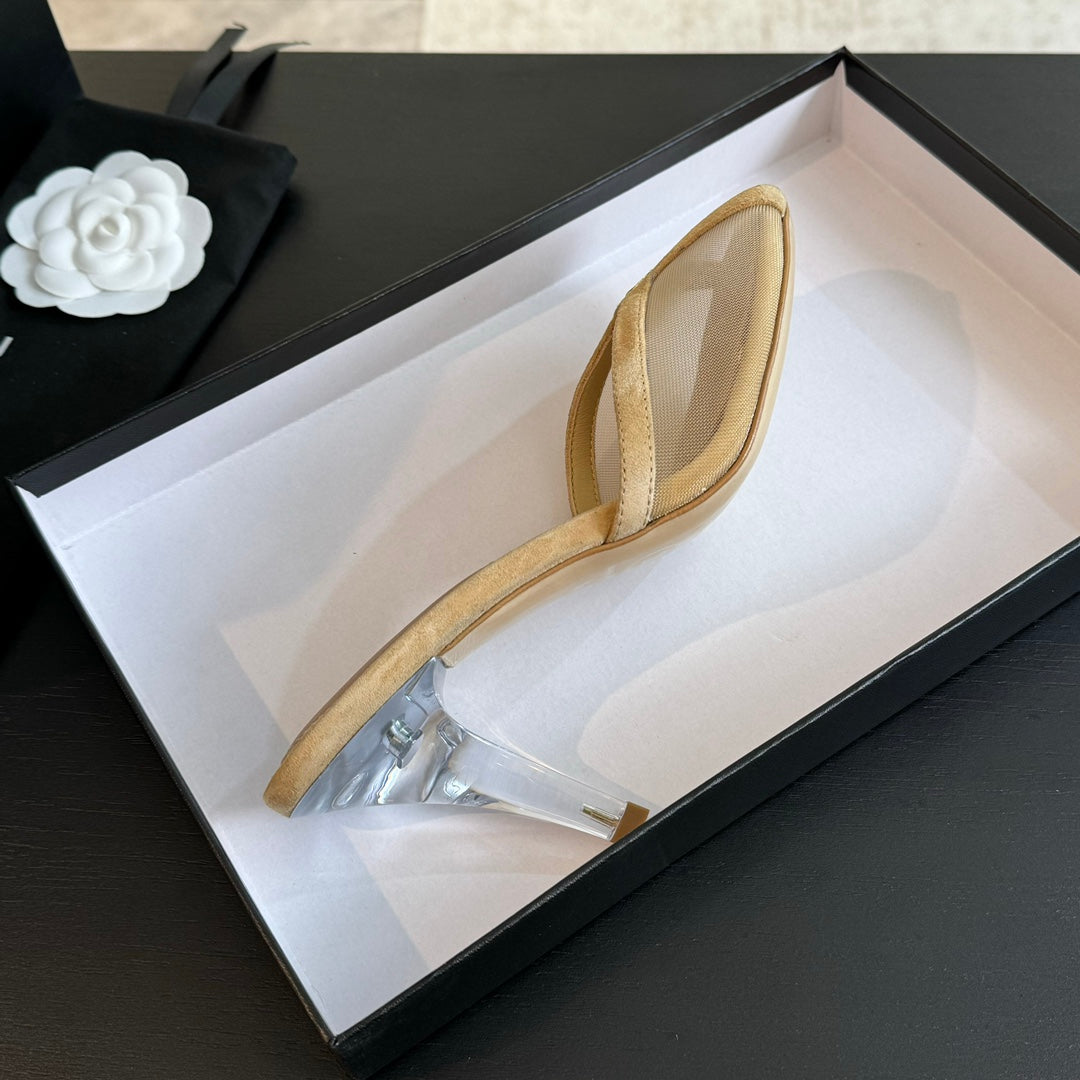 cc mule sandal beige lace beige calfskin