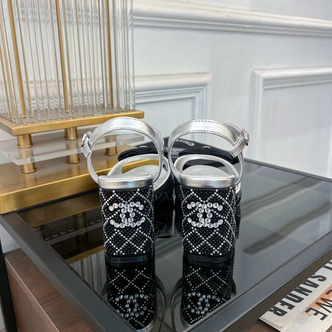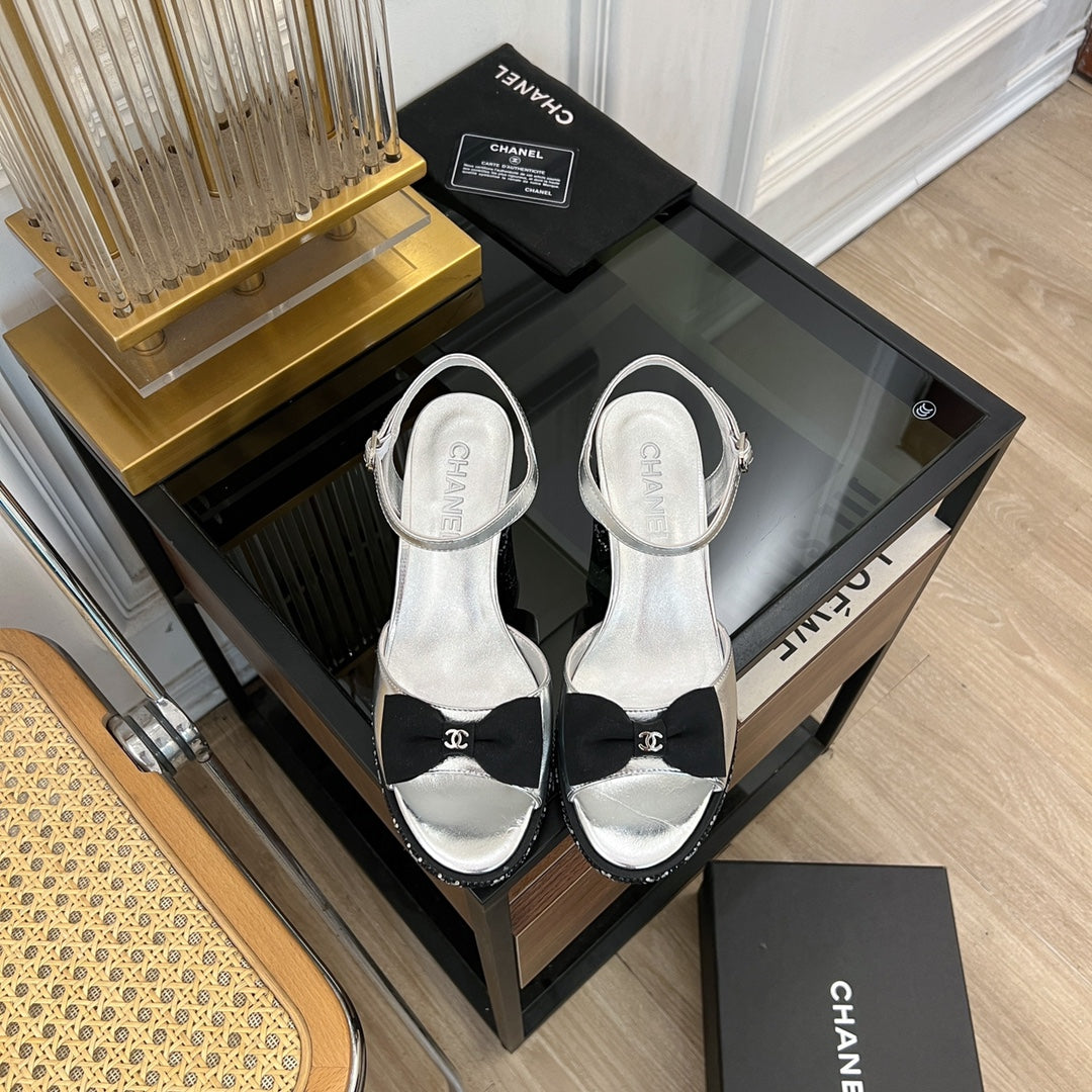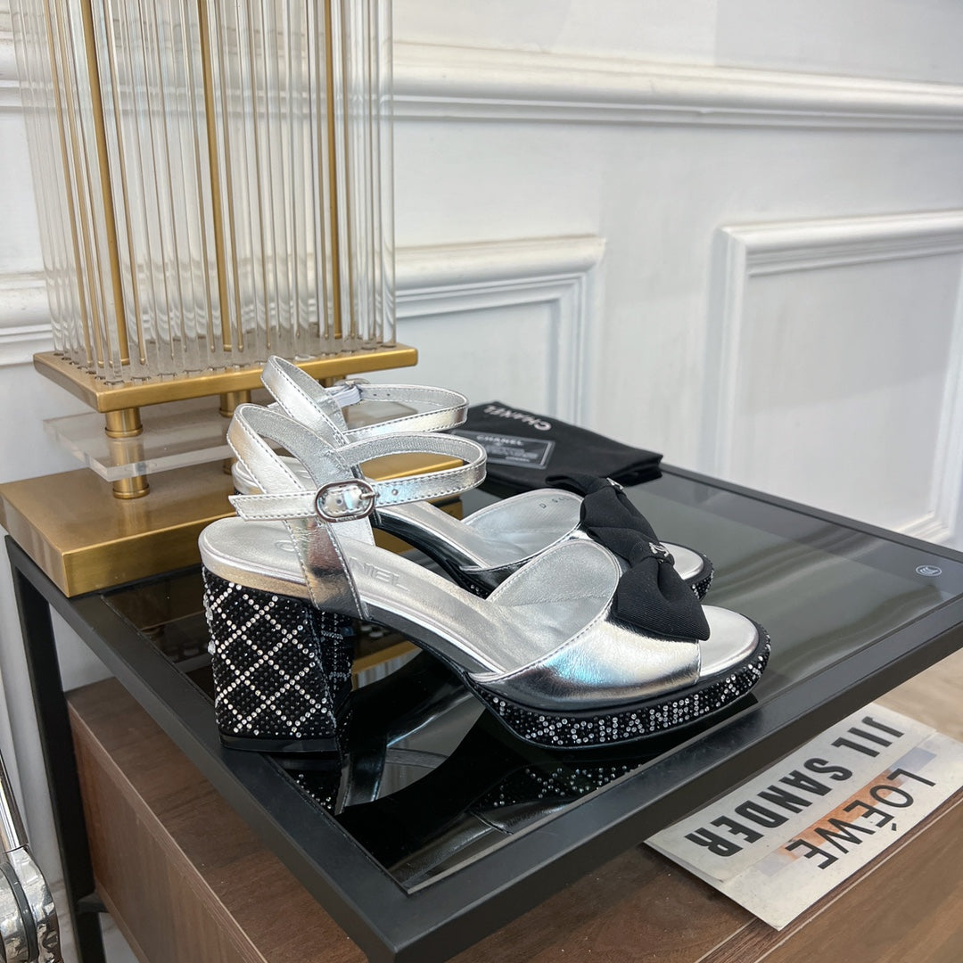 slingbacks sandal 75 black bow silver metalic lambskin