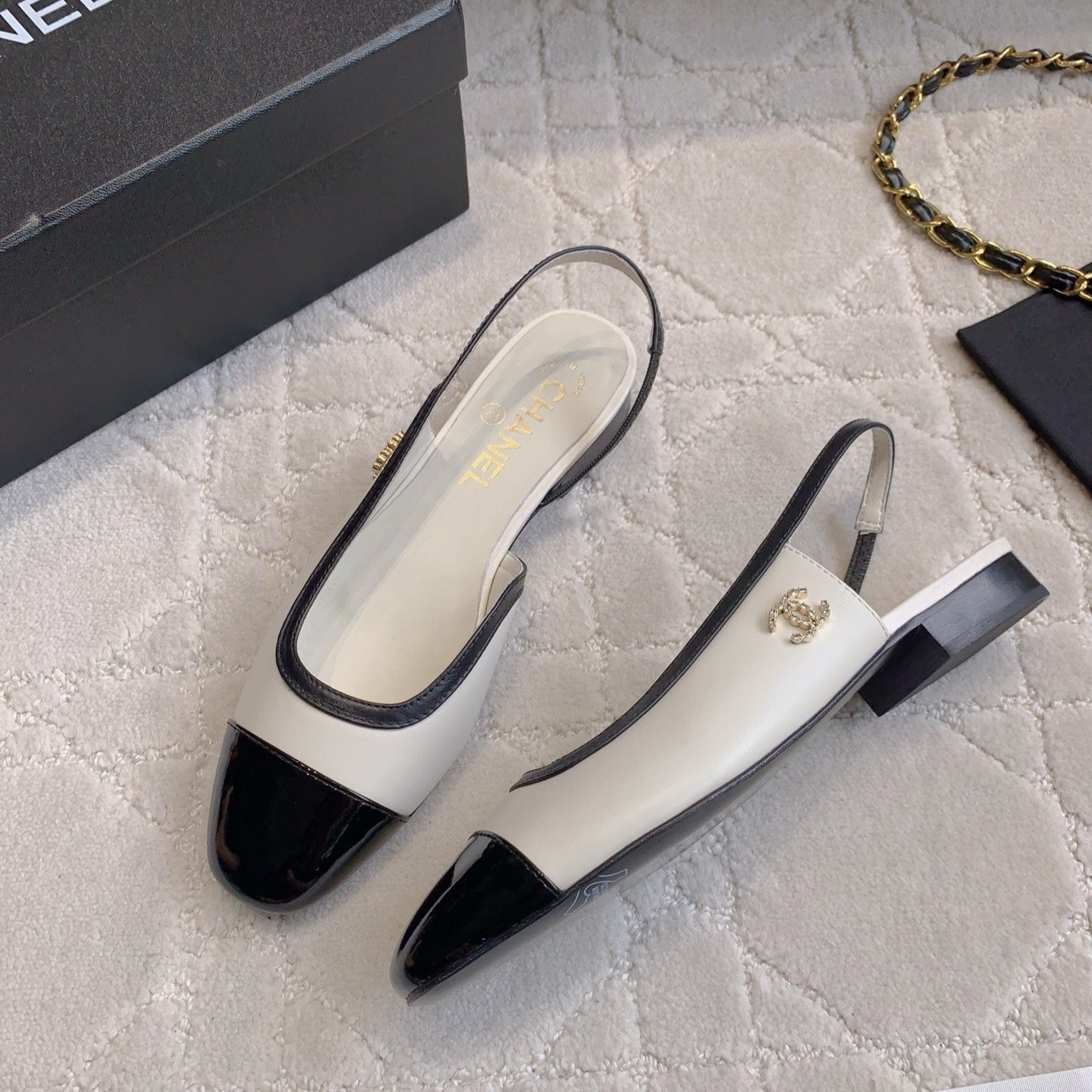 CC Cap Toe Slingback Black White Lambskin 404284