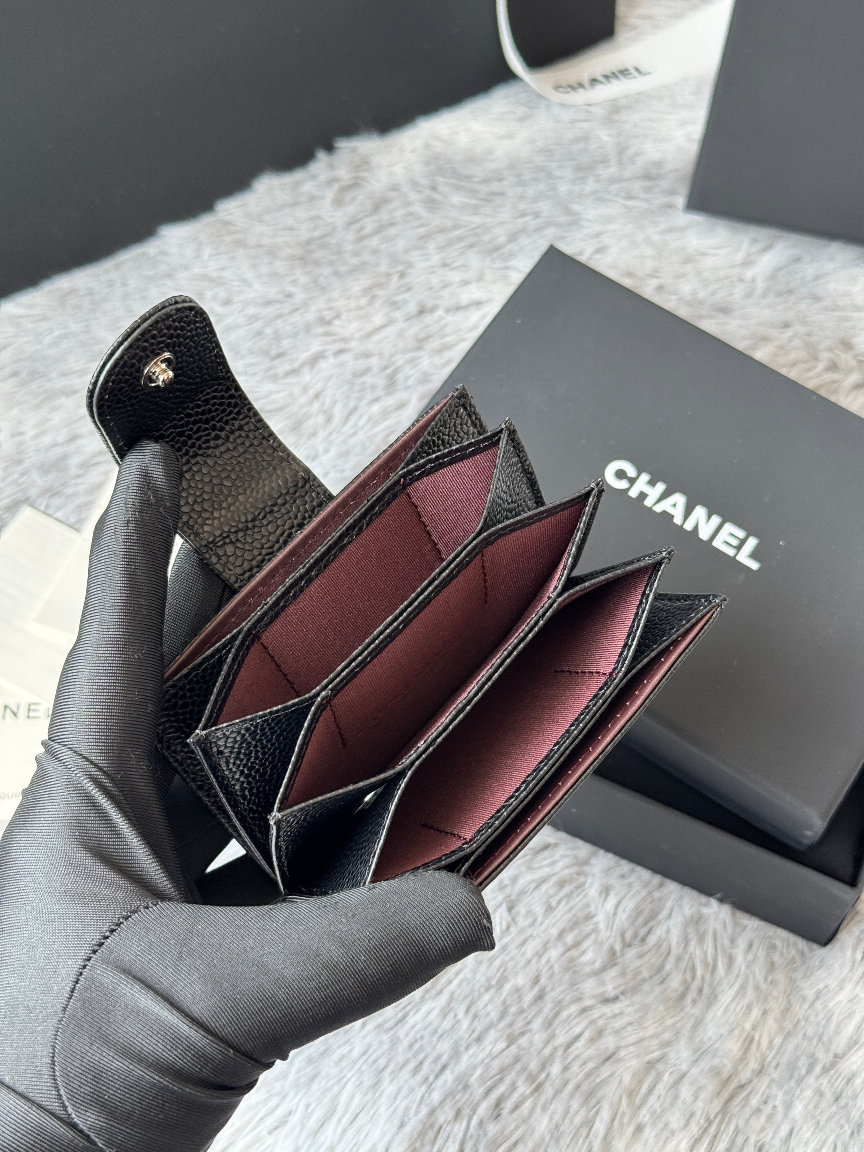 CC Accordion Card Holder Black Sliver-tone Metal Caviar 242646