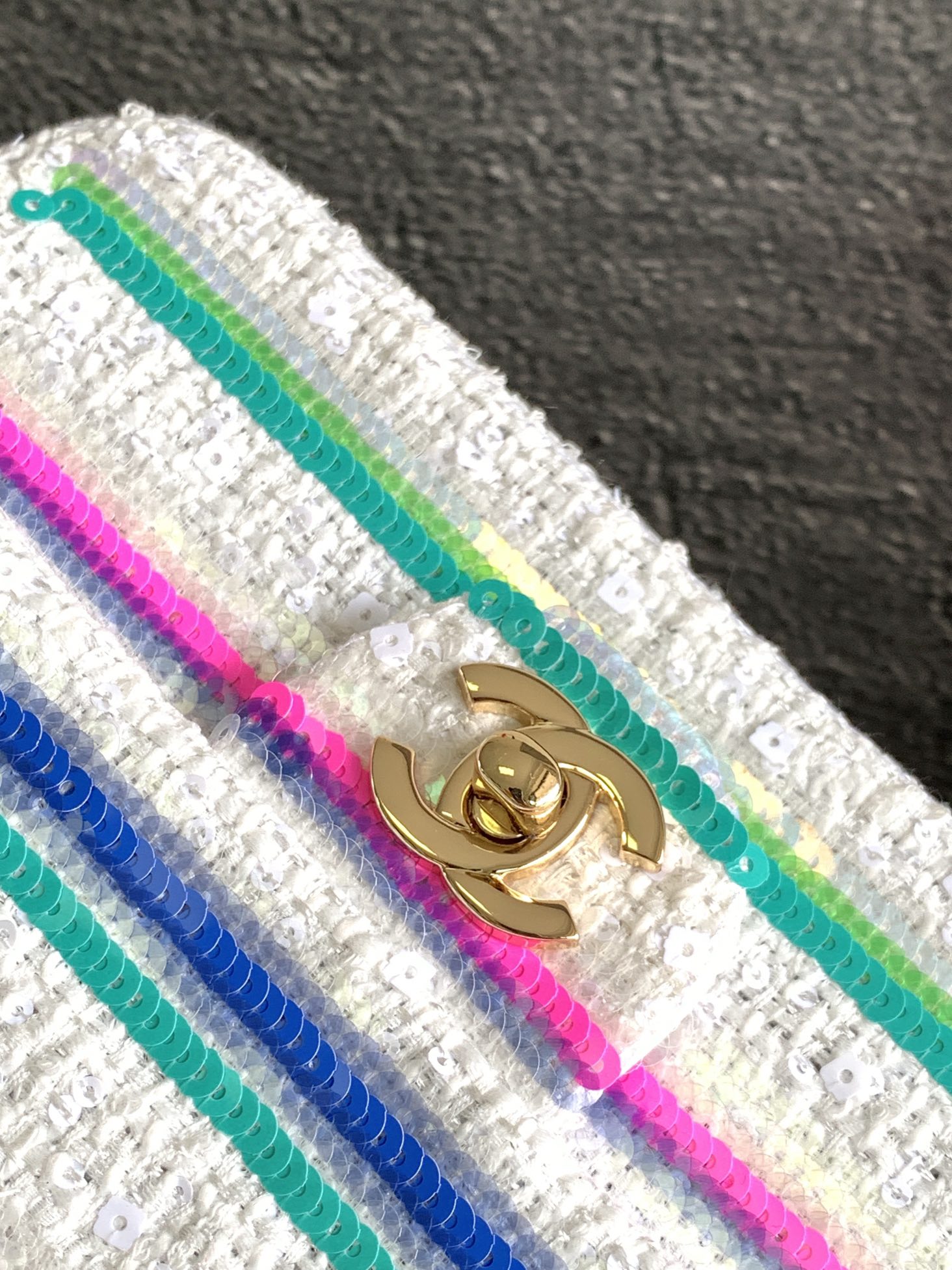 MINI 20 CLASSIC HANDBAG IN WHITE EMBROIDERED TWEED SEQUINS