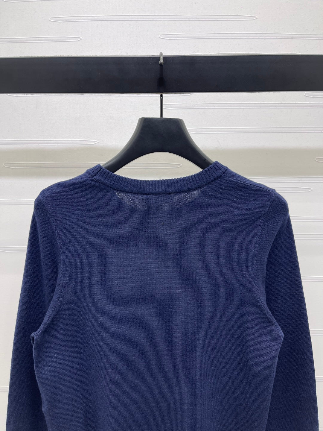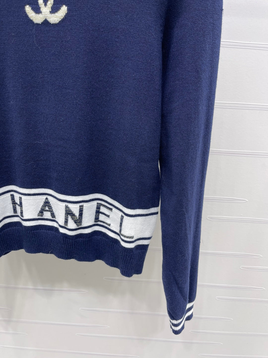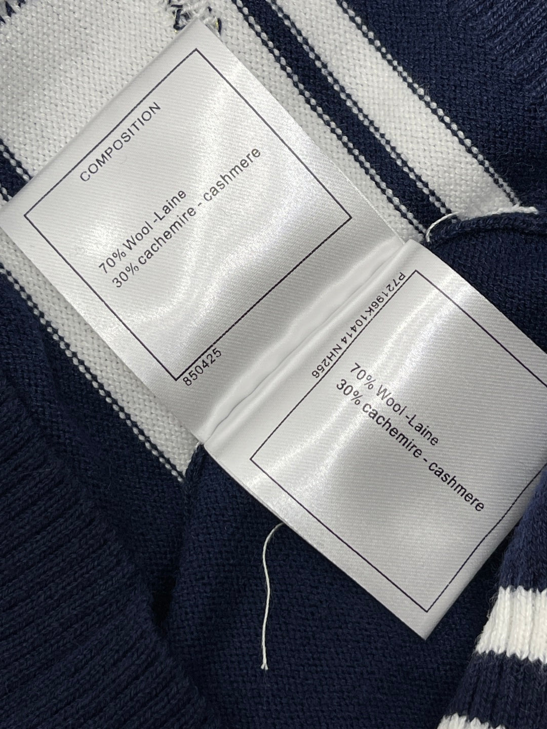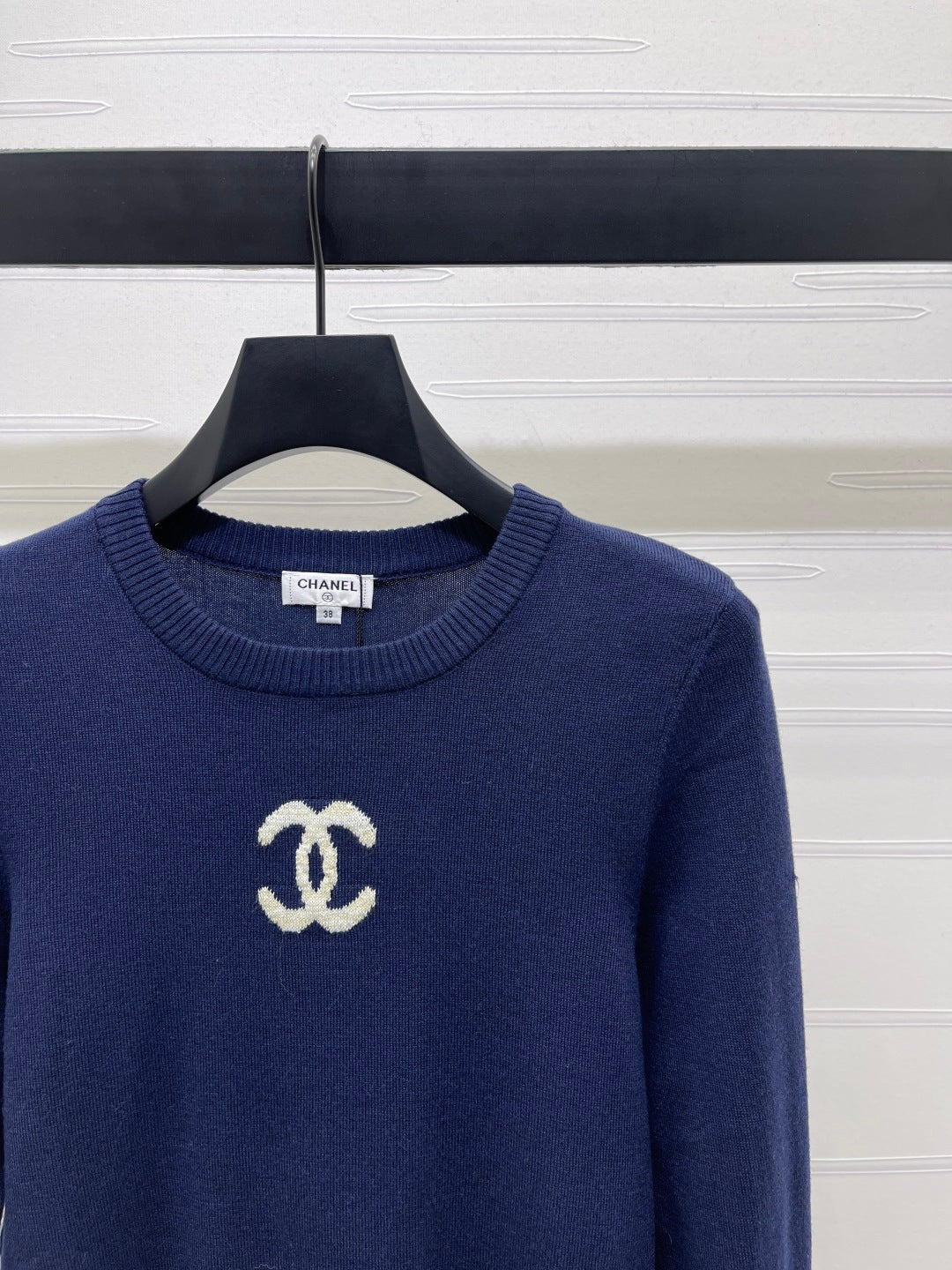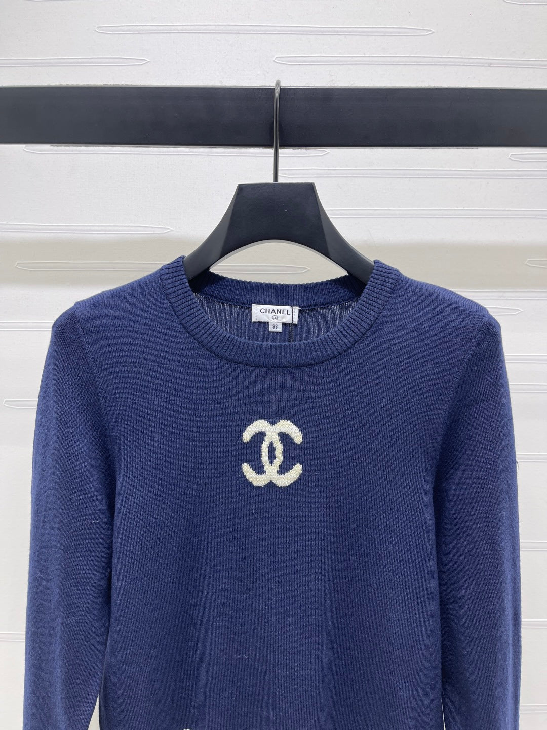 CC 25 Jacquard Double C Logo Pullover Sweater Blue Wool Cashmere