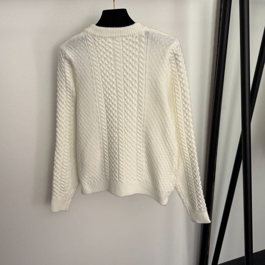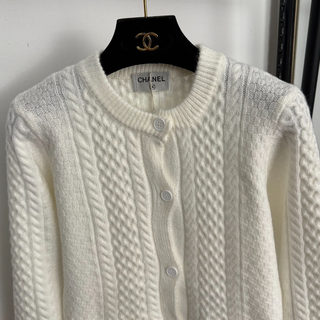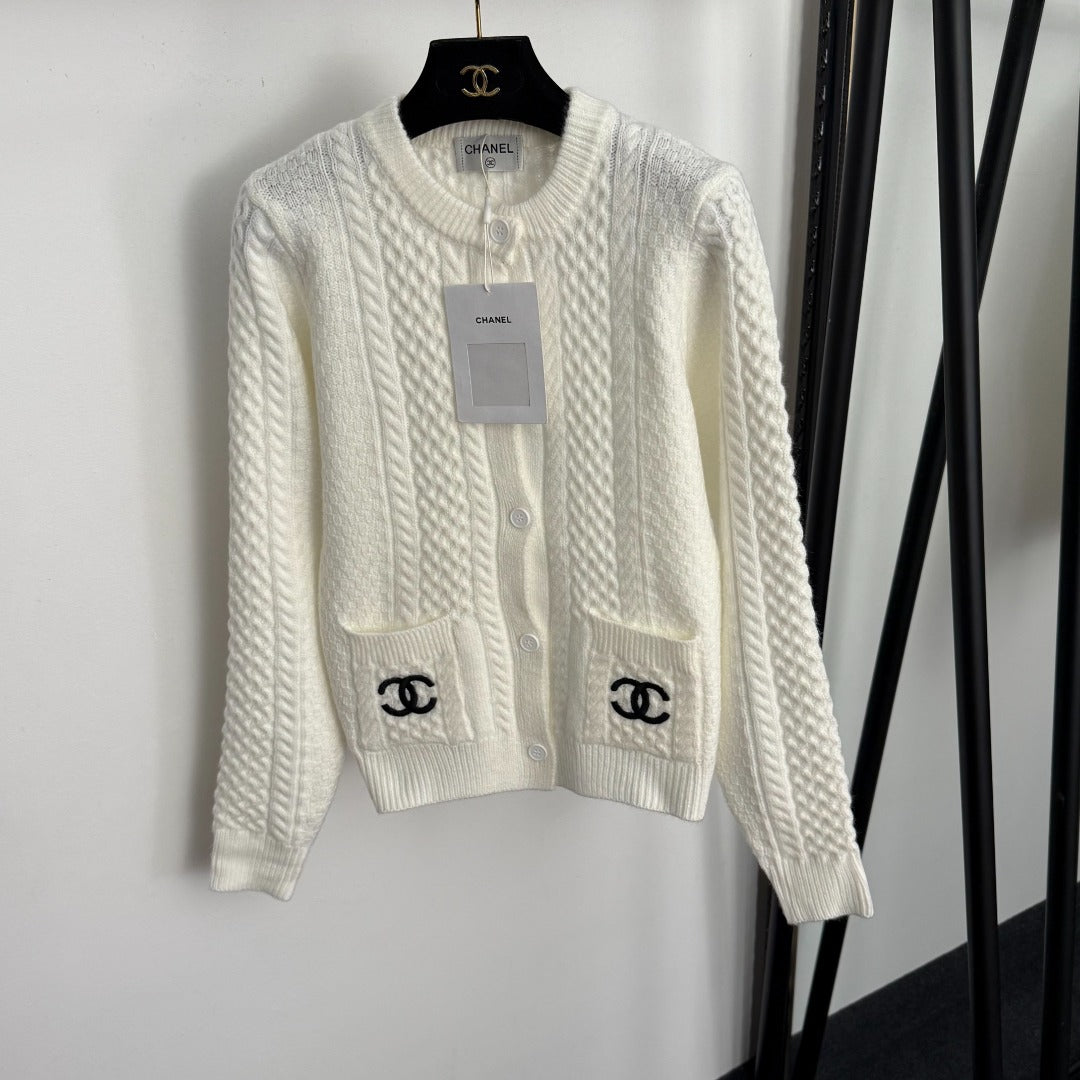 CC Double-Pocket Long-sleeved Cable-knit Cardigan