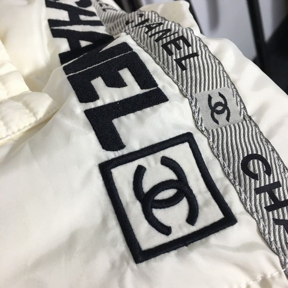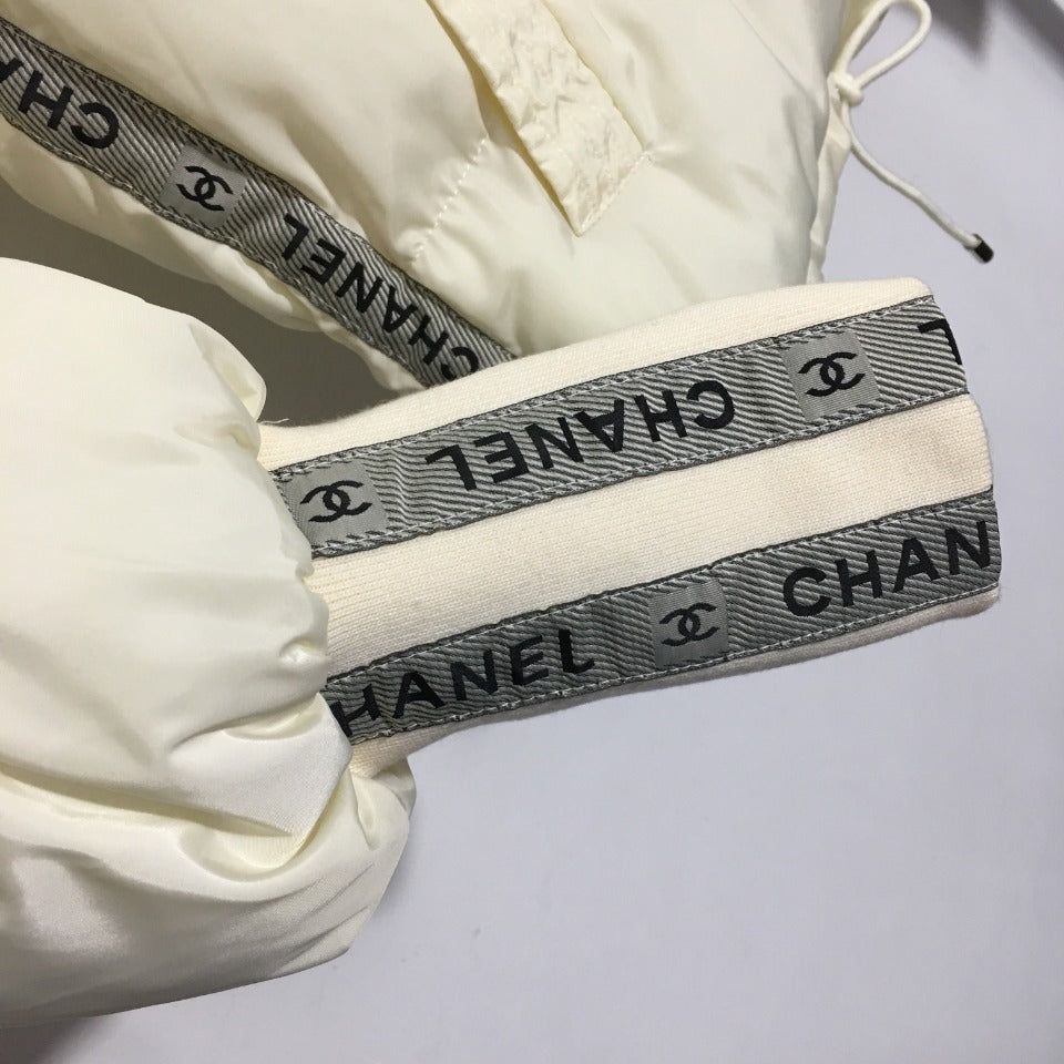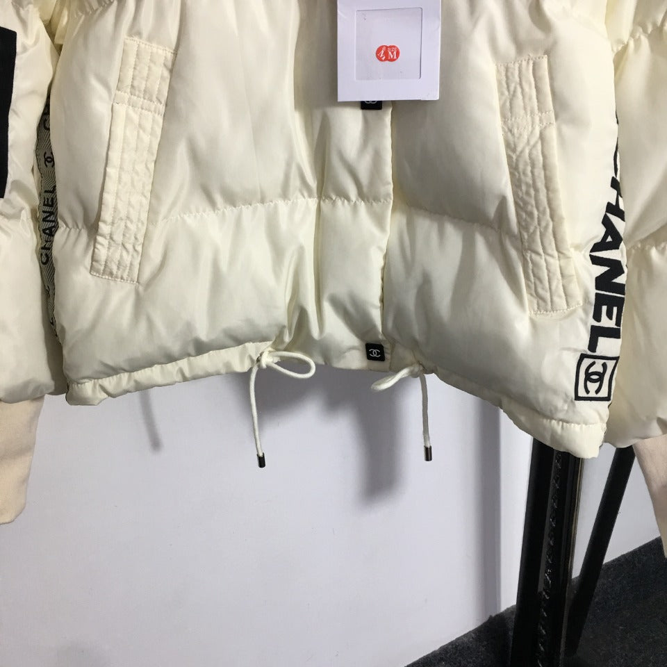 CC Logo Embroidered Letters Ribbon Stitching Long-Sleeved Hooded Cotton Jacket