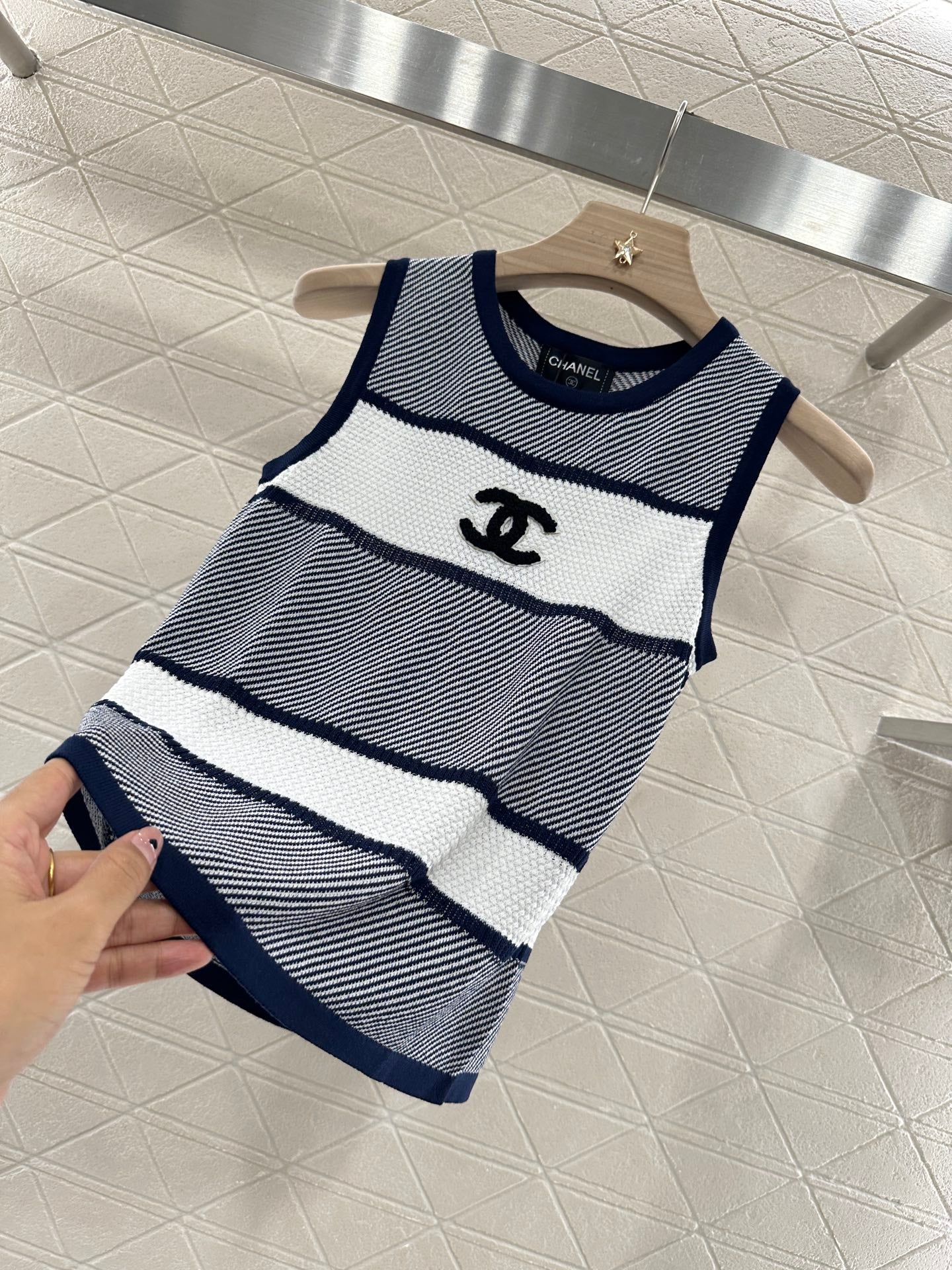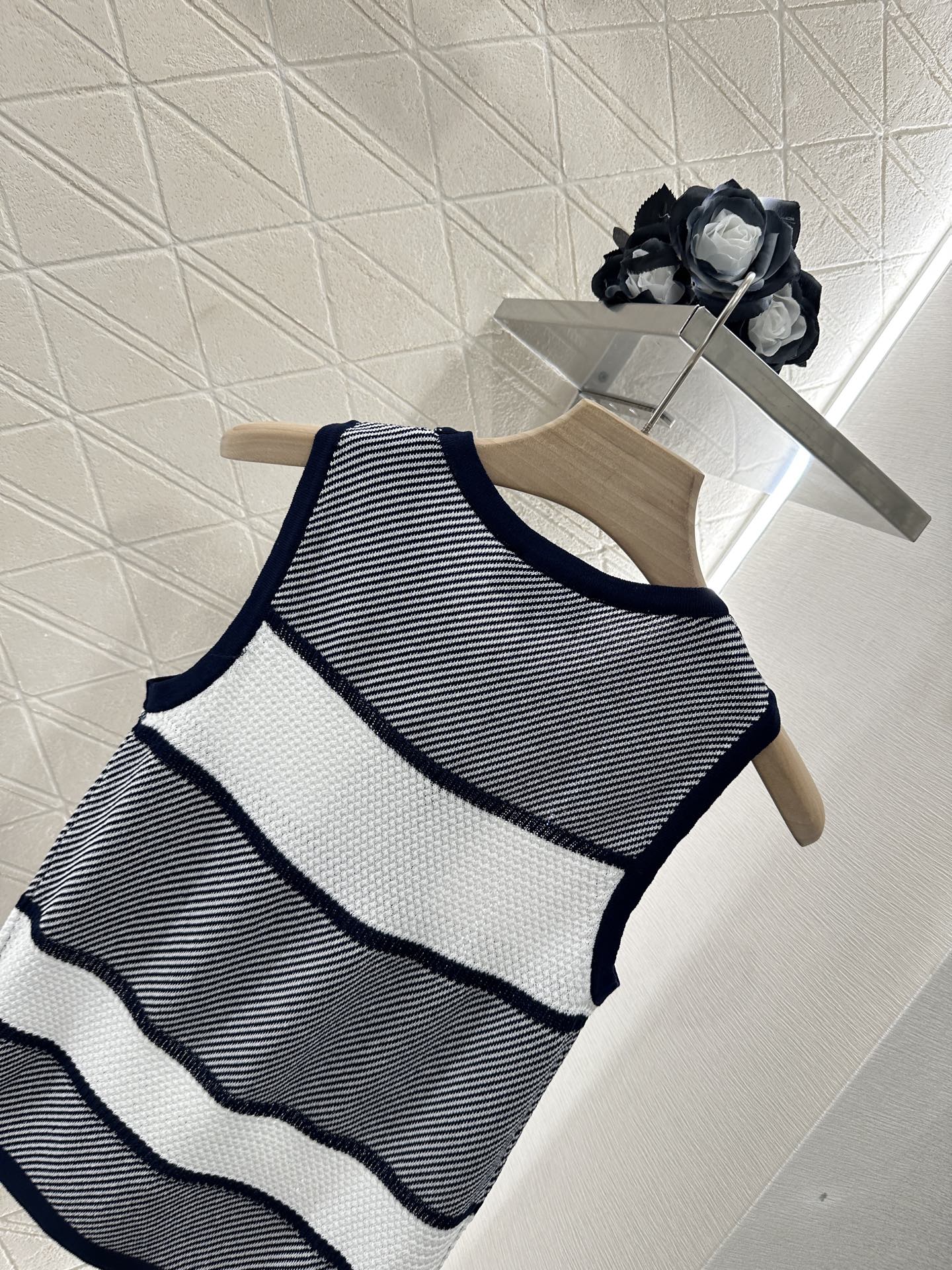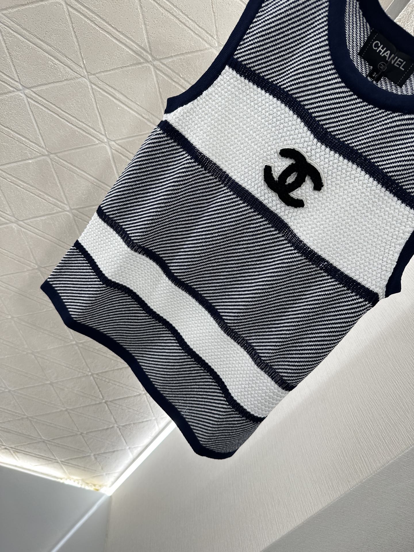 Chanel 25 Tank Top Black White Patchwork Knitted Crewneck