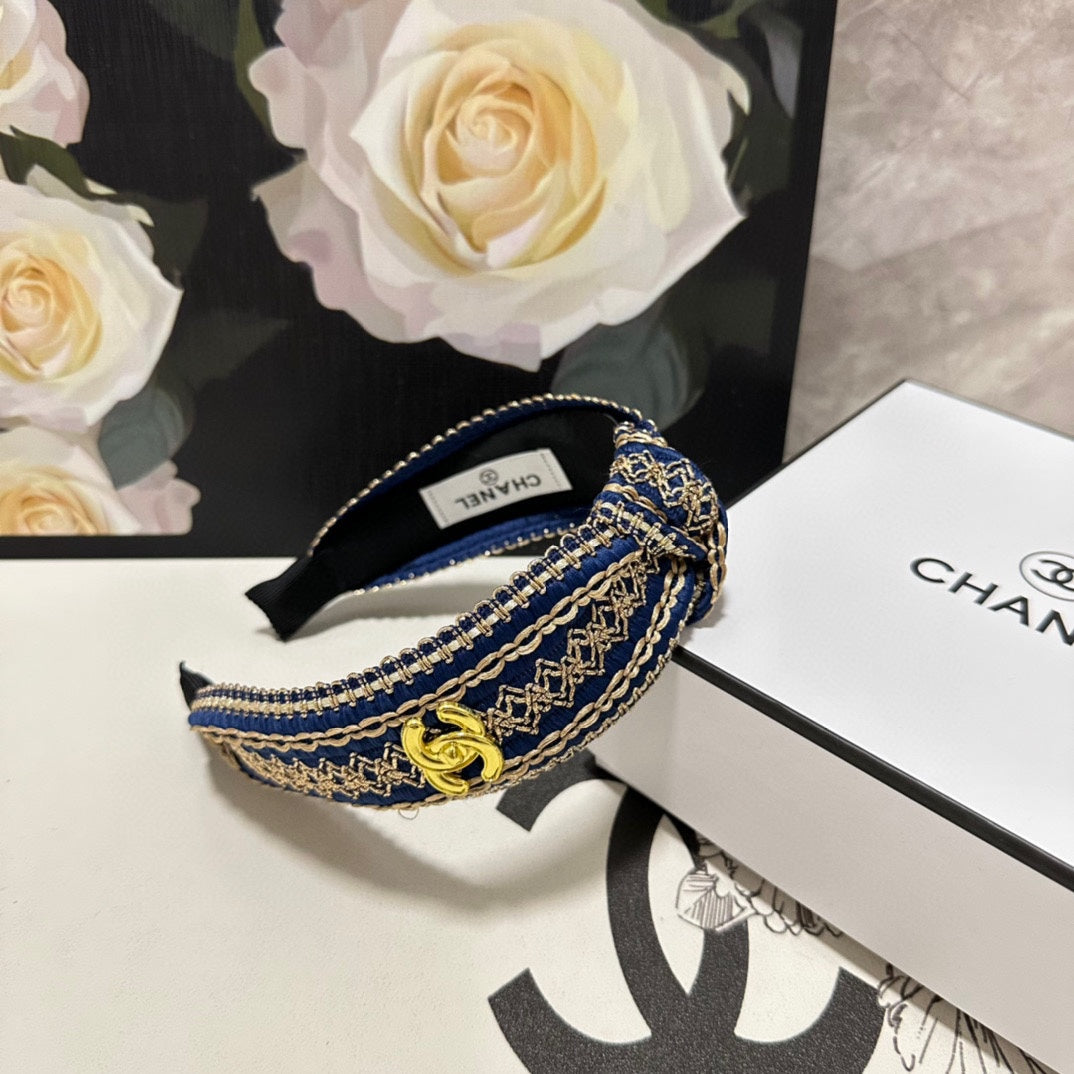 NAVY BLUE MIX LIGHT YELLOW FABRIC HEADBAND 168585
