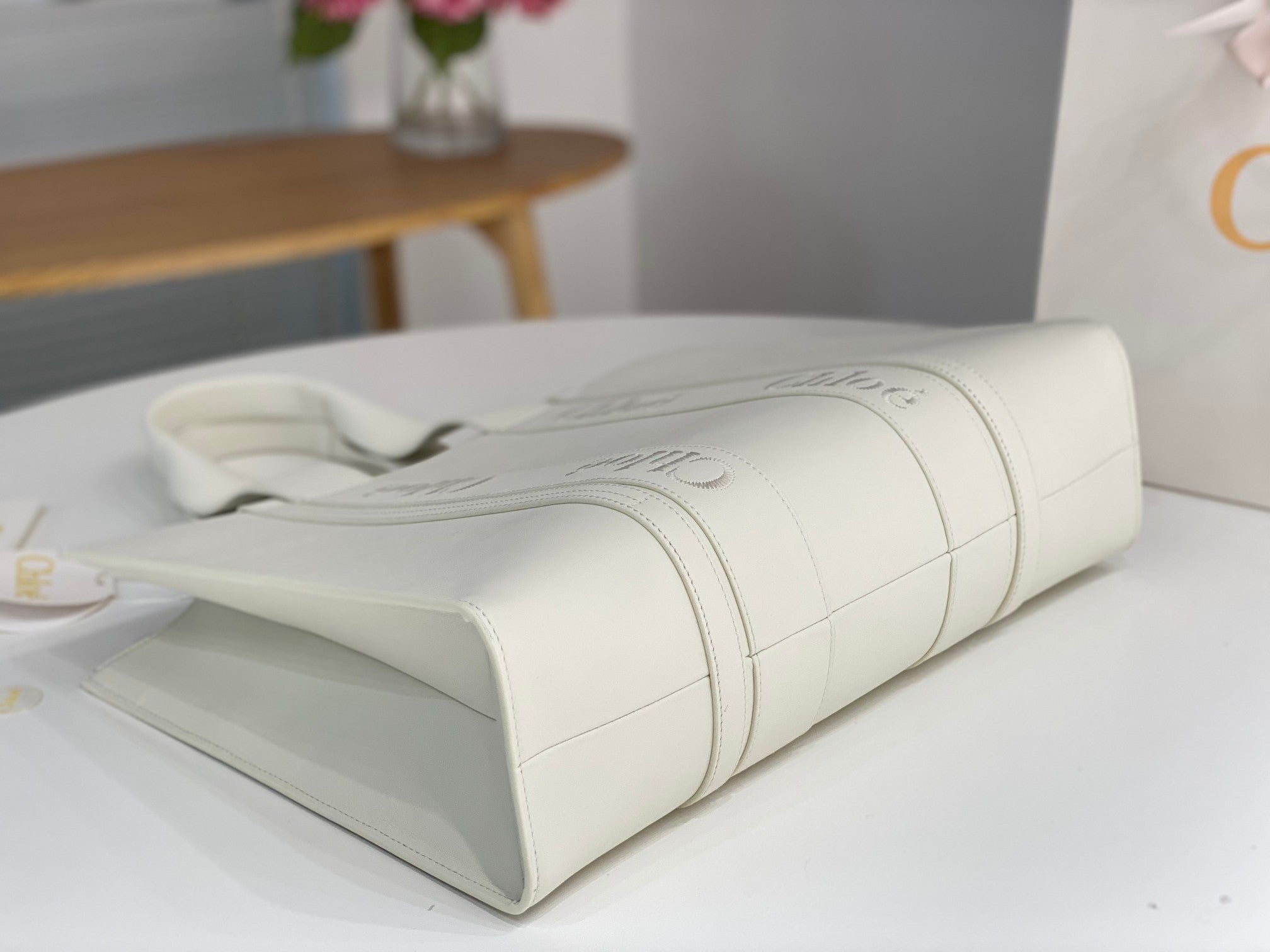 Chloé Woody Tote Bag 45cm White Calfskin 531226