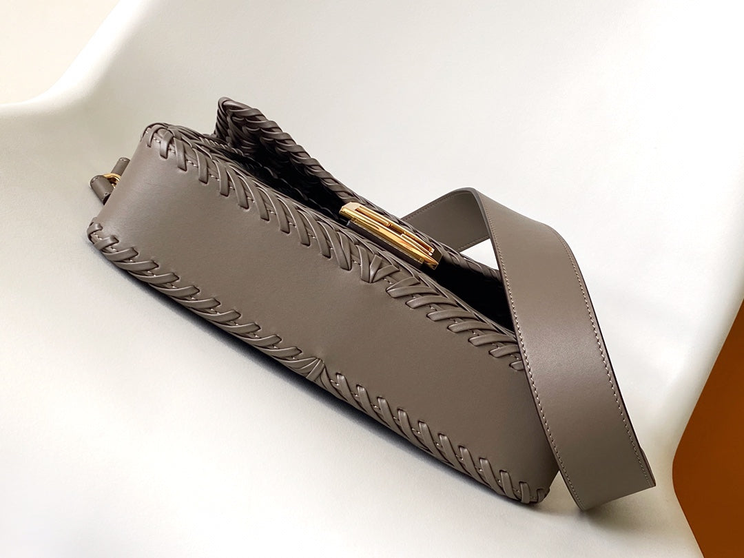 Fend Baguette 27 Bag Black Brown Sand interlaced leather Ghw