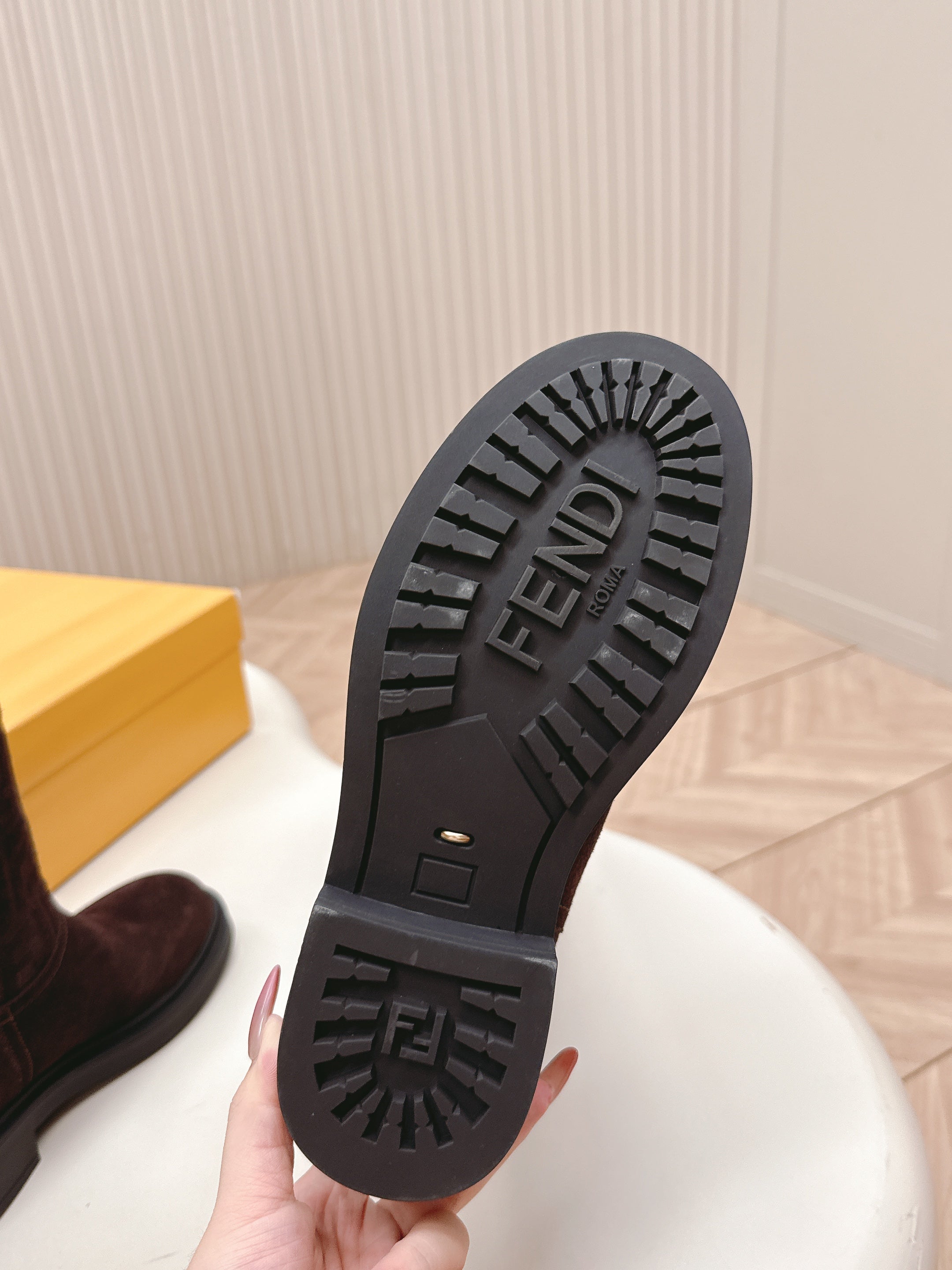 Fendi 25 Short Boots Deep Chocolate Brown Suede 500933