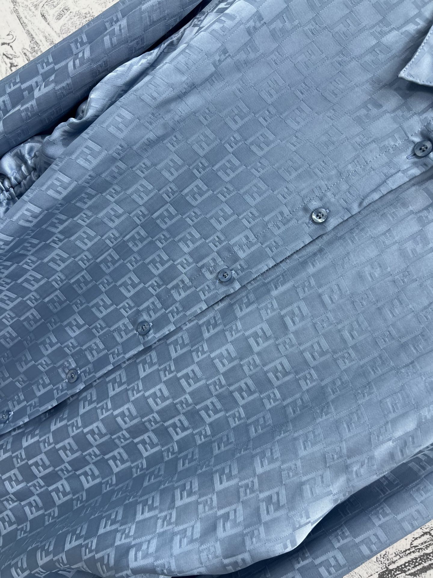 Fendi 25 Double F Shirt Blue Viscose Polyester