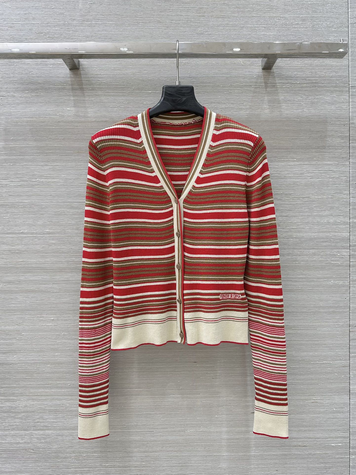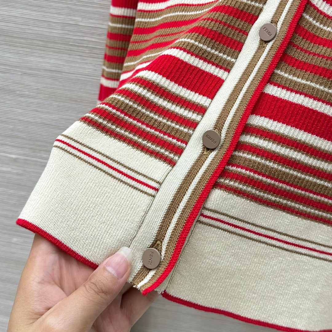 Fendi 25 Knitted Small Cardigan Red Silk Cotton