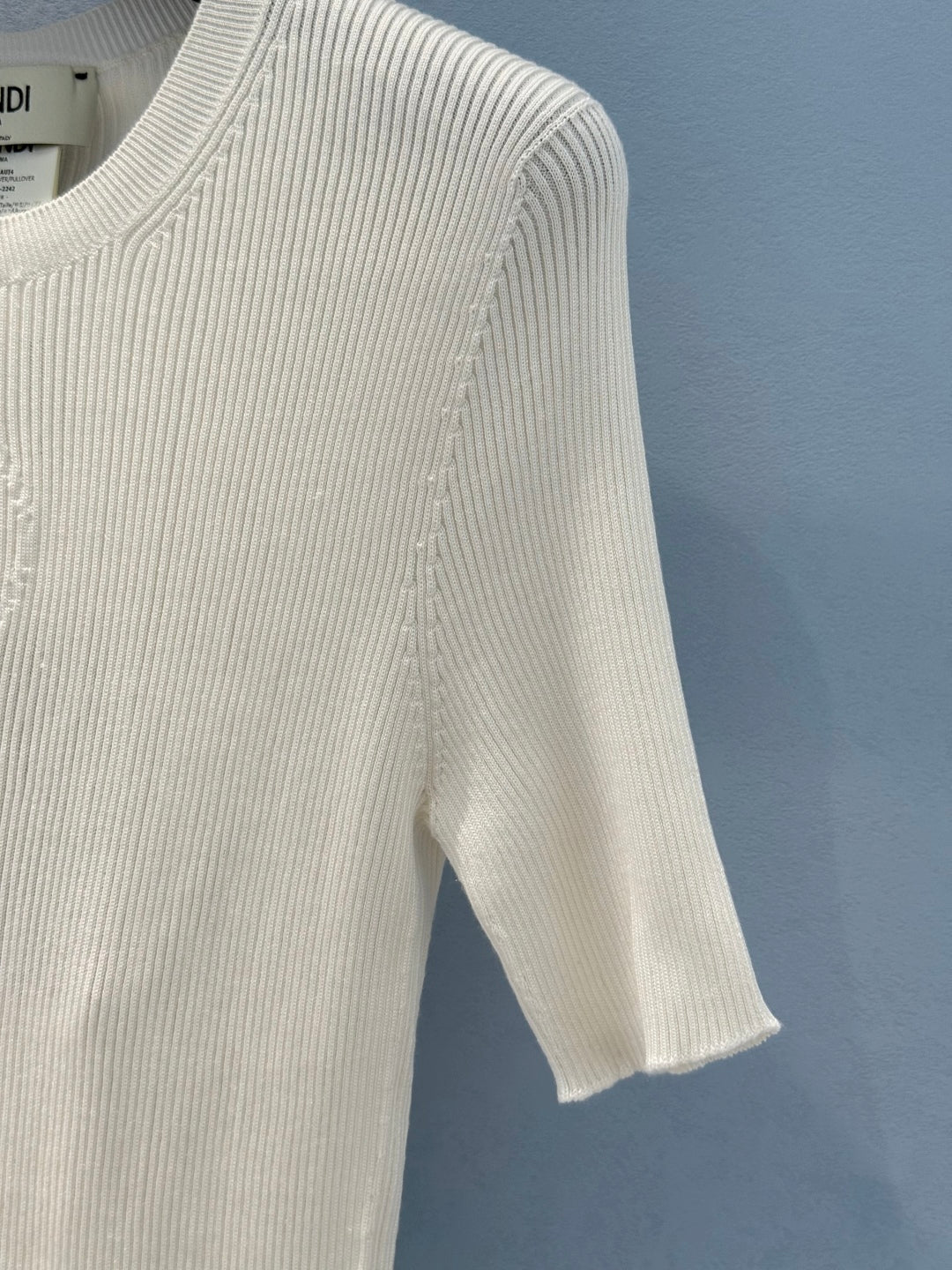 Fendi 25 Letter Hollow Knitted Short Sleeves top White Silk Cotton