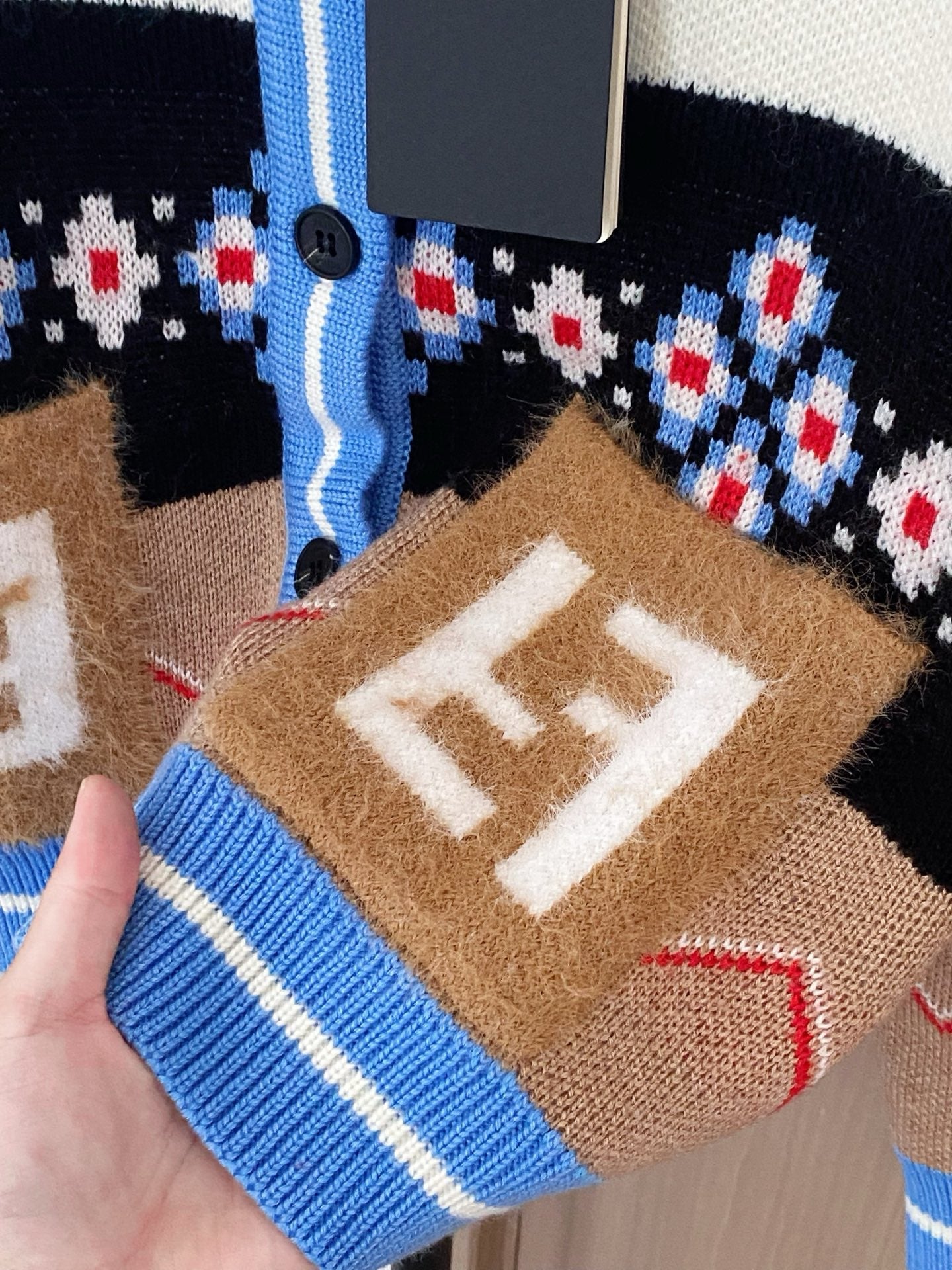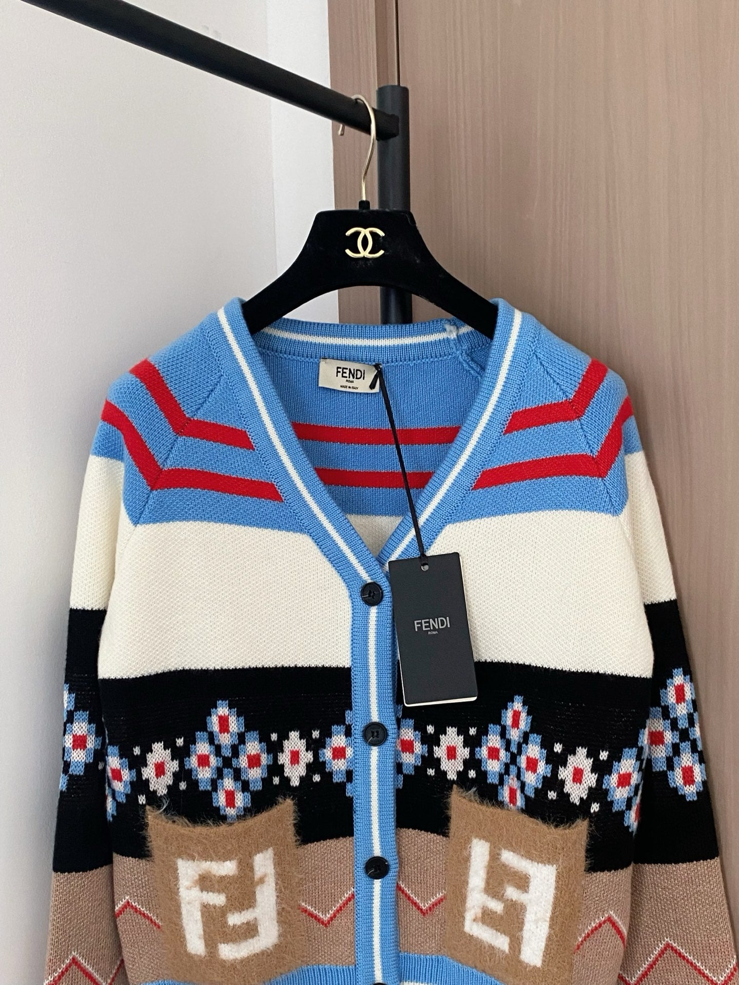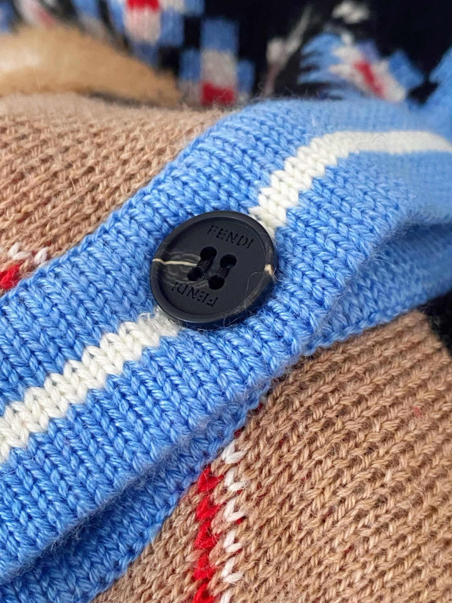 Fendi 25 Round Neck Pockets Mix Colors Viscose Cardigan