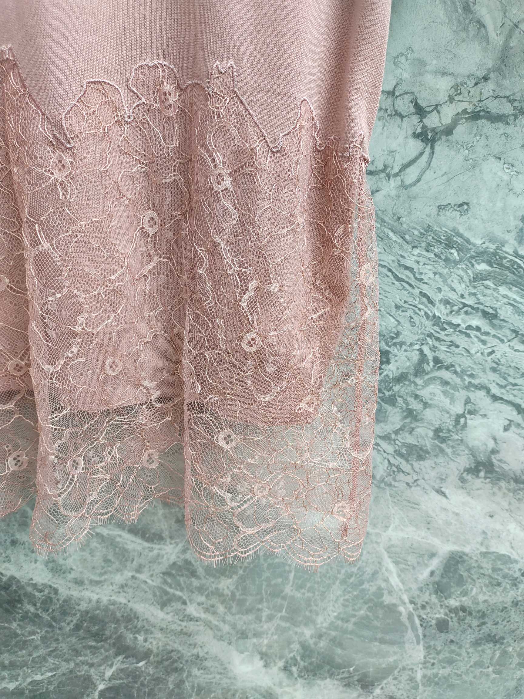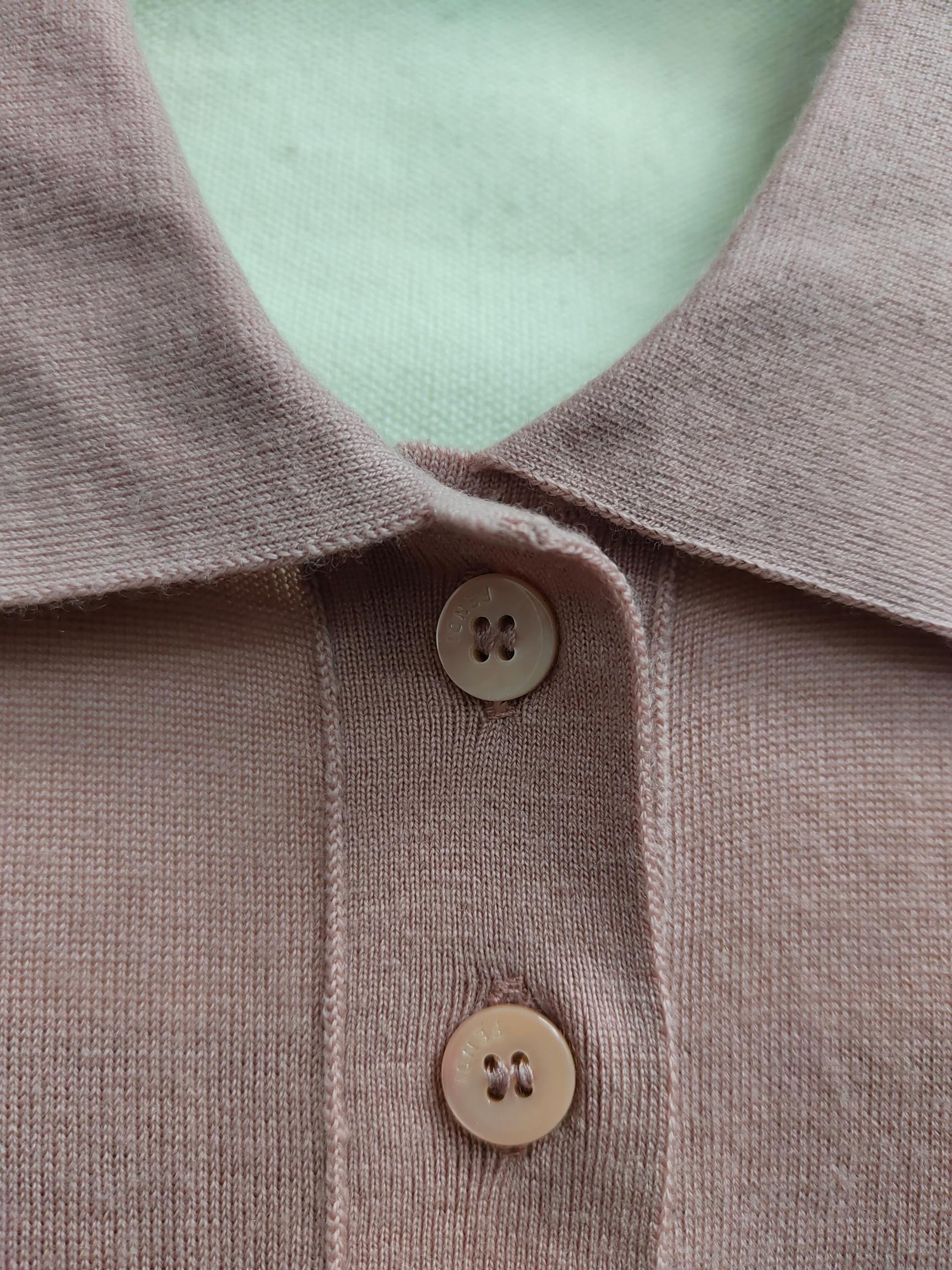 Fendi 25SS Polo Collar Lace Hem Soft Pink Cashmere Shirt