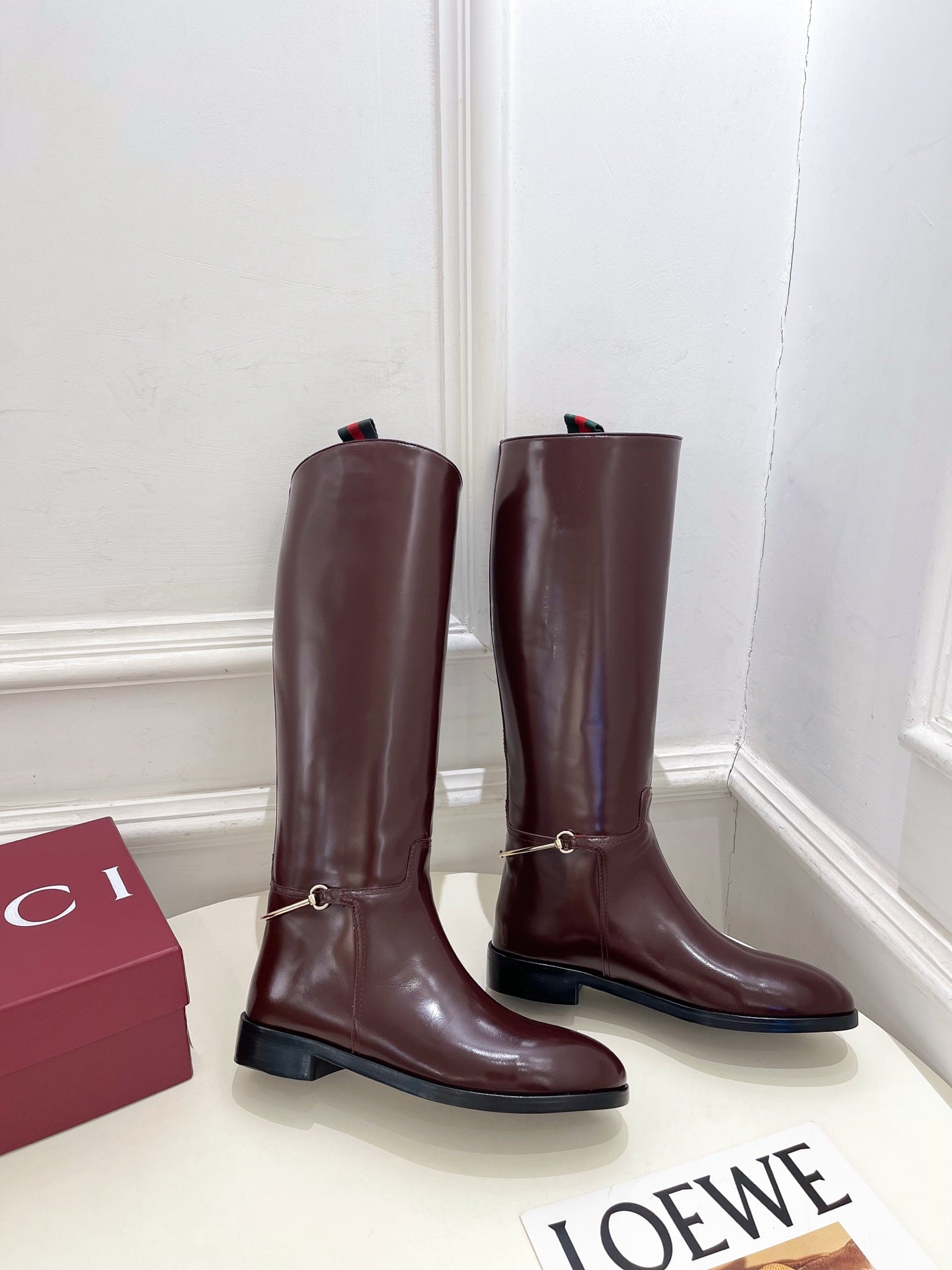 Gucci 25𝐬𝐬 horsebit long boots burgundy calfskin 435382