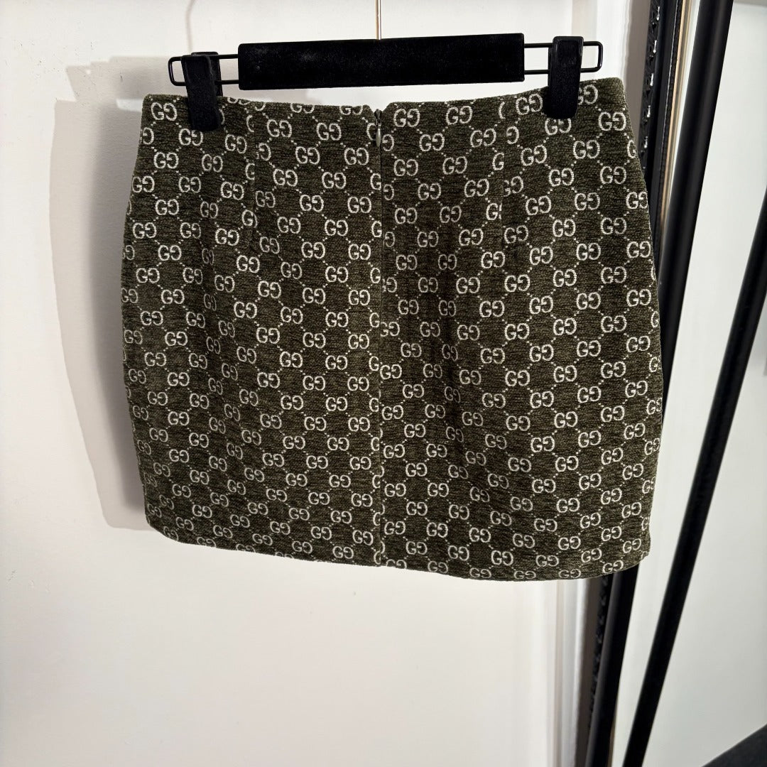 GG Bodycon A-line Mini Skirt Green in Cotton 135283