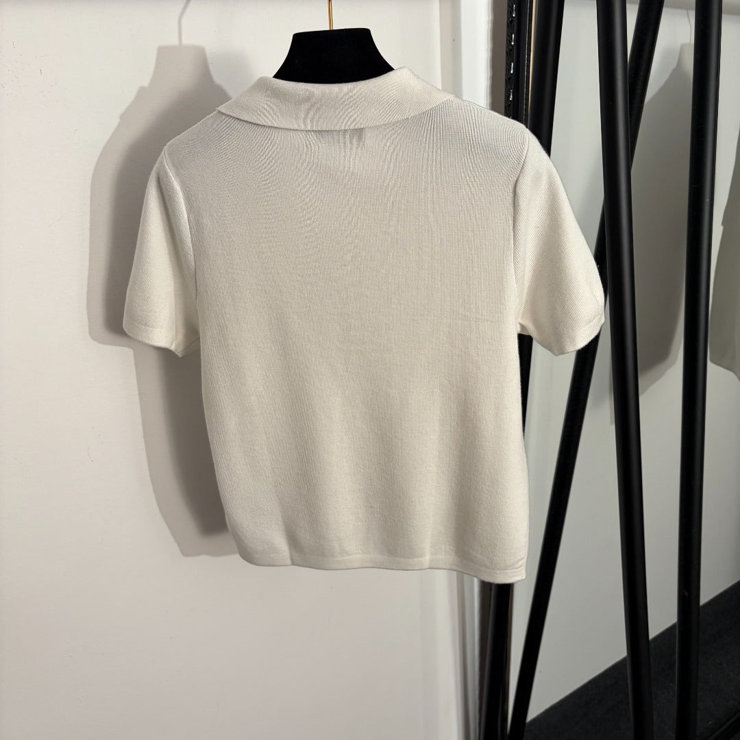 GG Embroidered Half-Button Collar Short-Sleeve Wool