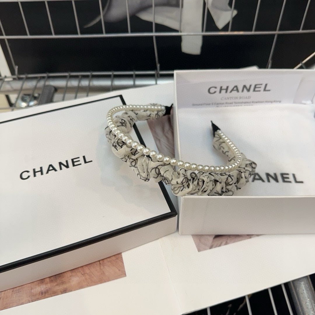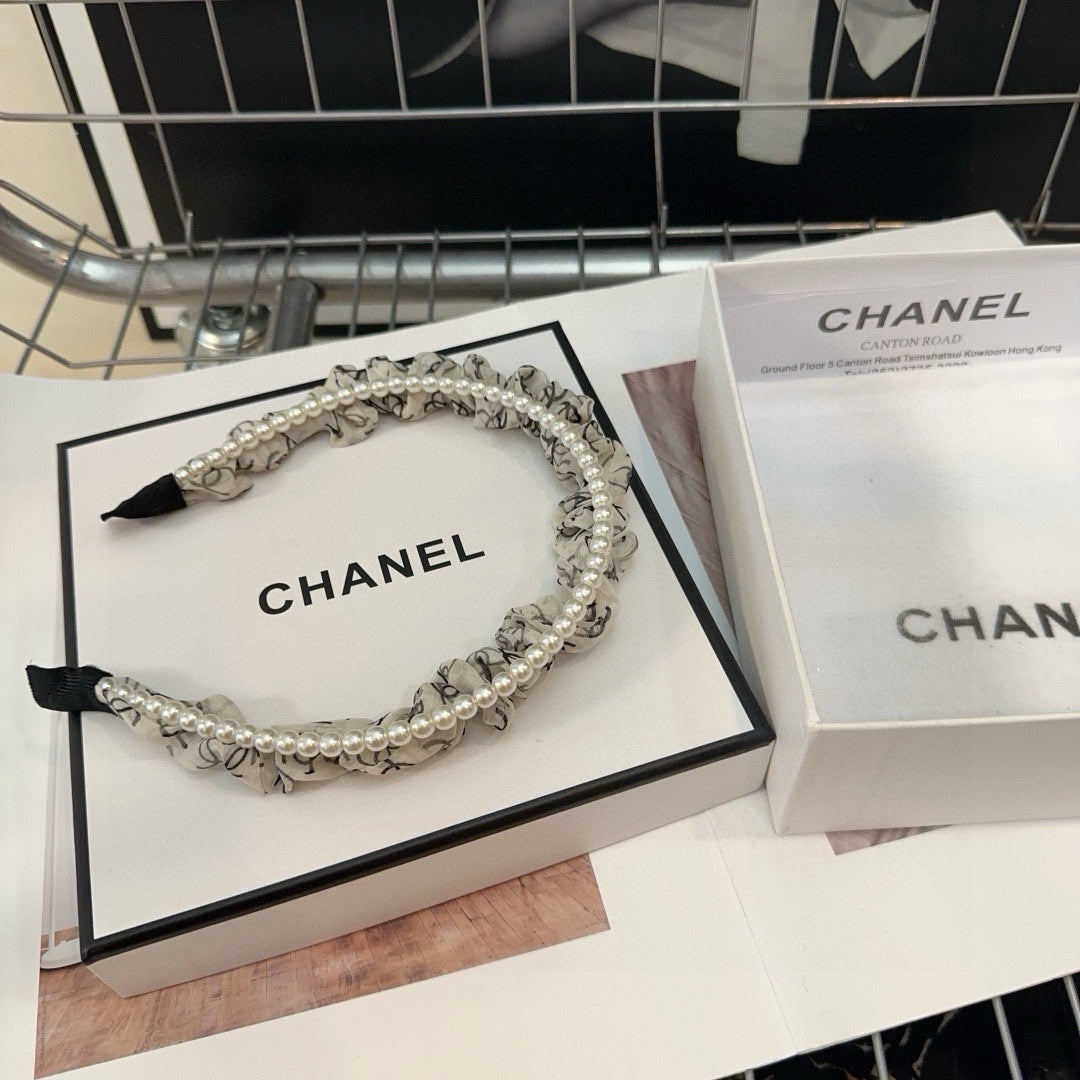 COLORFUL VOILE FABRIC WITH PEARL CHAIN HAIRBAND 410874