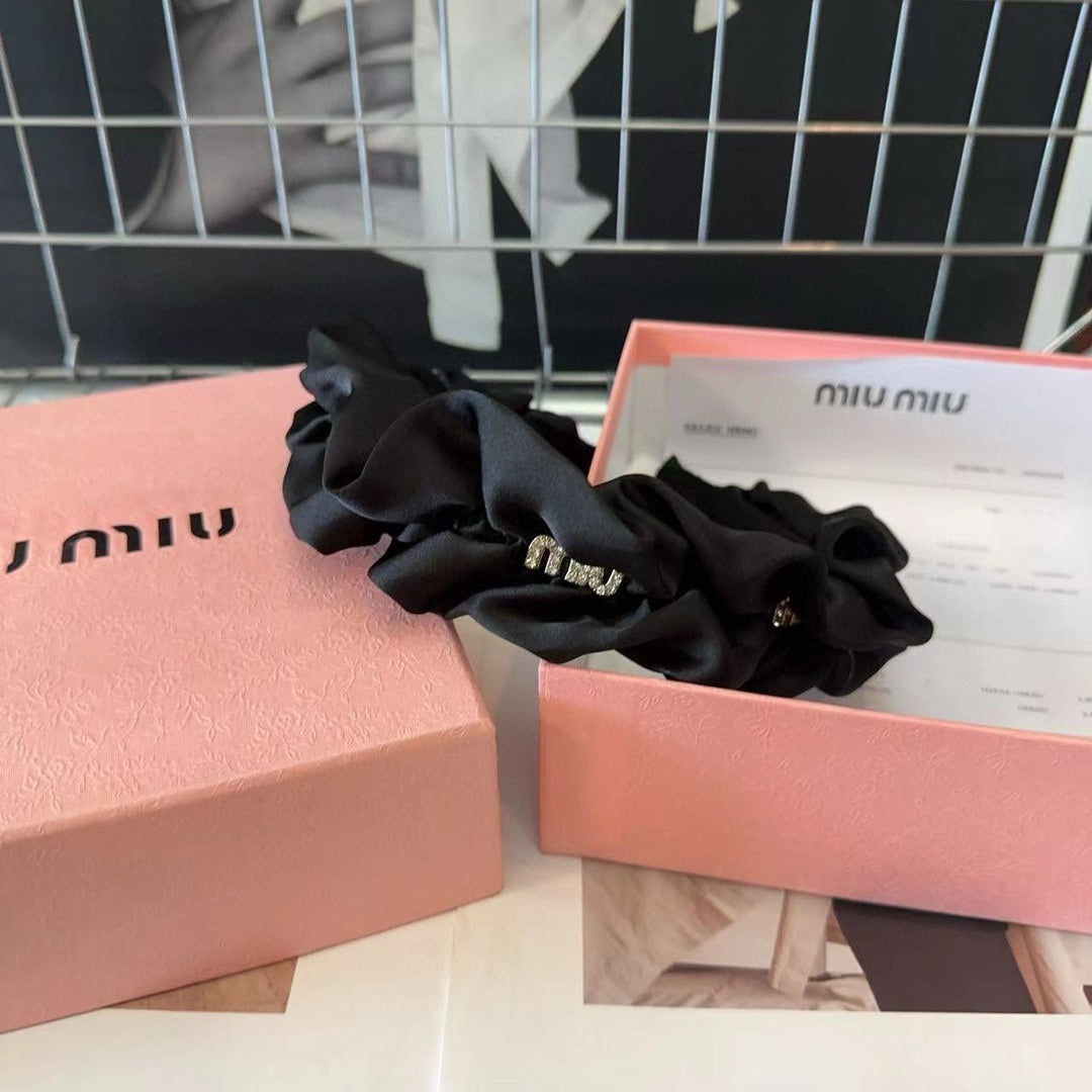 CRYSTAL LOGO HEADBAND IN BLACK WRINKLED SILK 412522