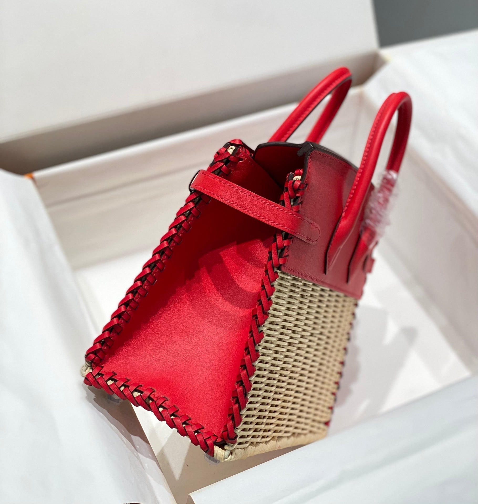 HM BIRKIN 25 CM PICNIC RED BAMBOO AND RATTAN