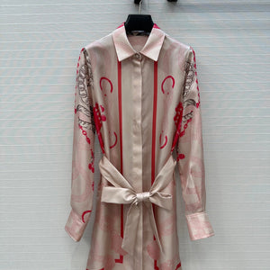 HM 25S Palefroi Remix Long Sleeve Dress Graphic Print in Pink Silk