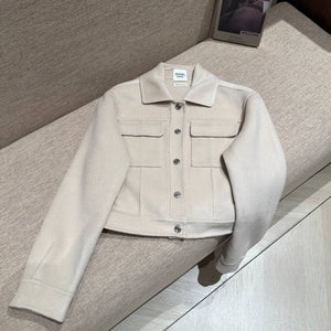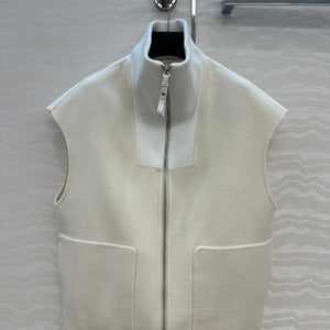 HM 25S Zipped Jacket H Leather Pockets in White Cashmere
