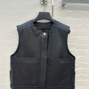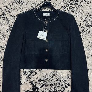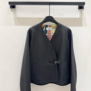 HM Leather Button V-Neck Blazer Black Lambskin 303970