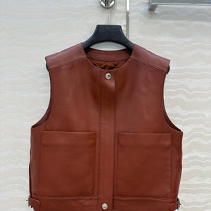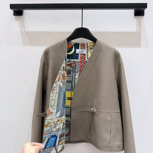 HM Leather Button V-Neck Blazer Brown Lambskin 303969