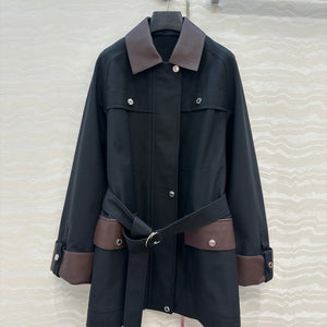 HM Majia Mid-Length Trench Coat Black Lychee-Grained Suede 304562