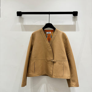 HM Leather Button V-Neck Blazer Beige Lambskin 303971