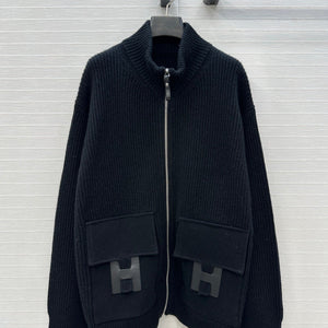 HM 25S Zipped Jacket H Leather Pockets in Black Cashmere 305011