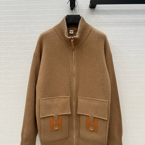 HM 25S Zipped Jacket H Leather Pockets in Brown Cashmere 305010