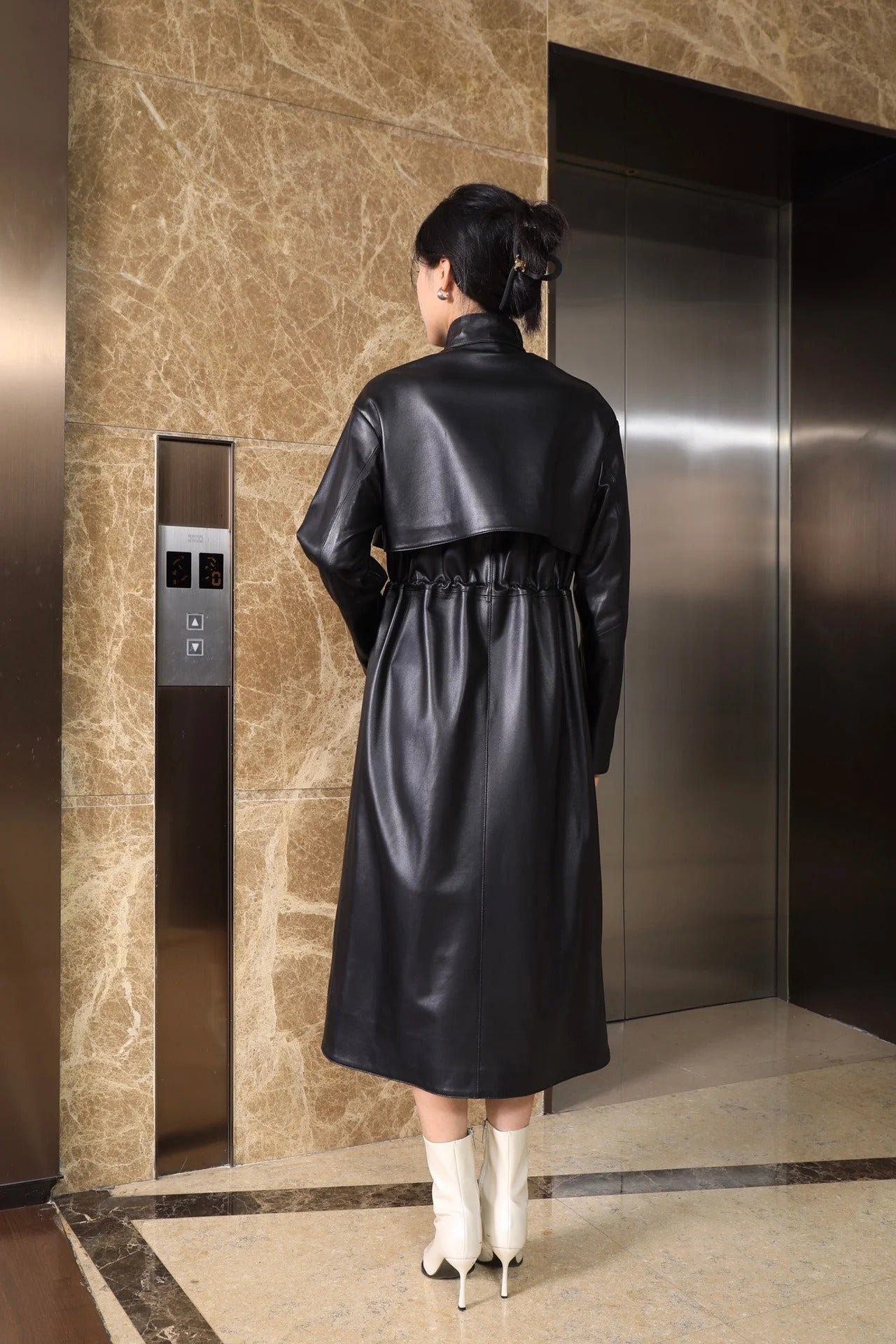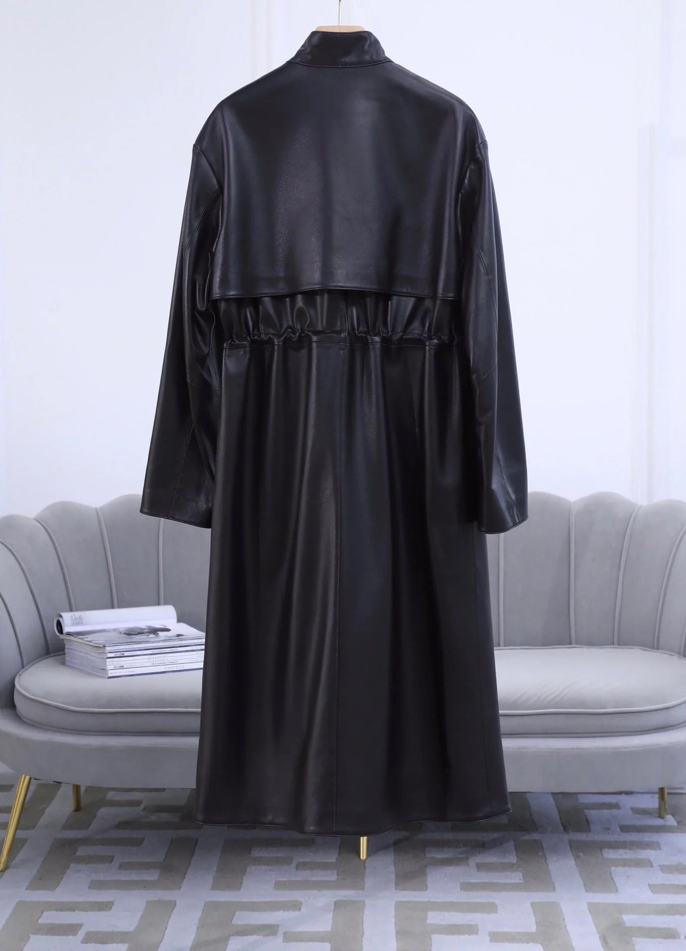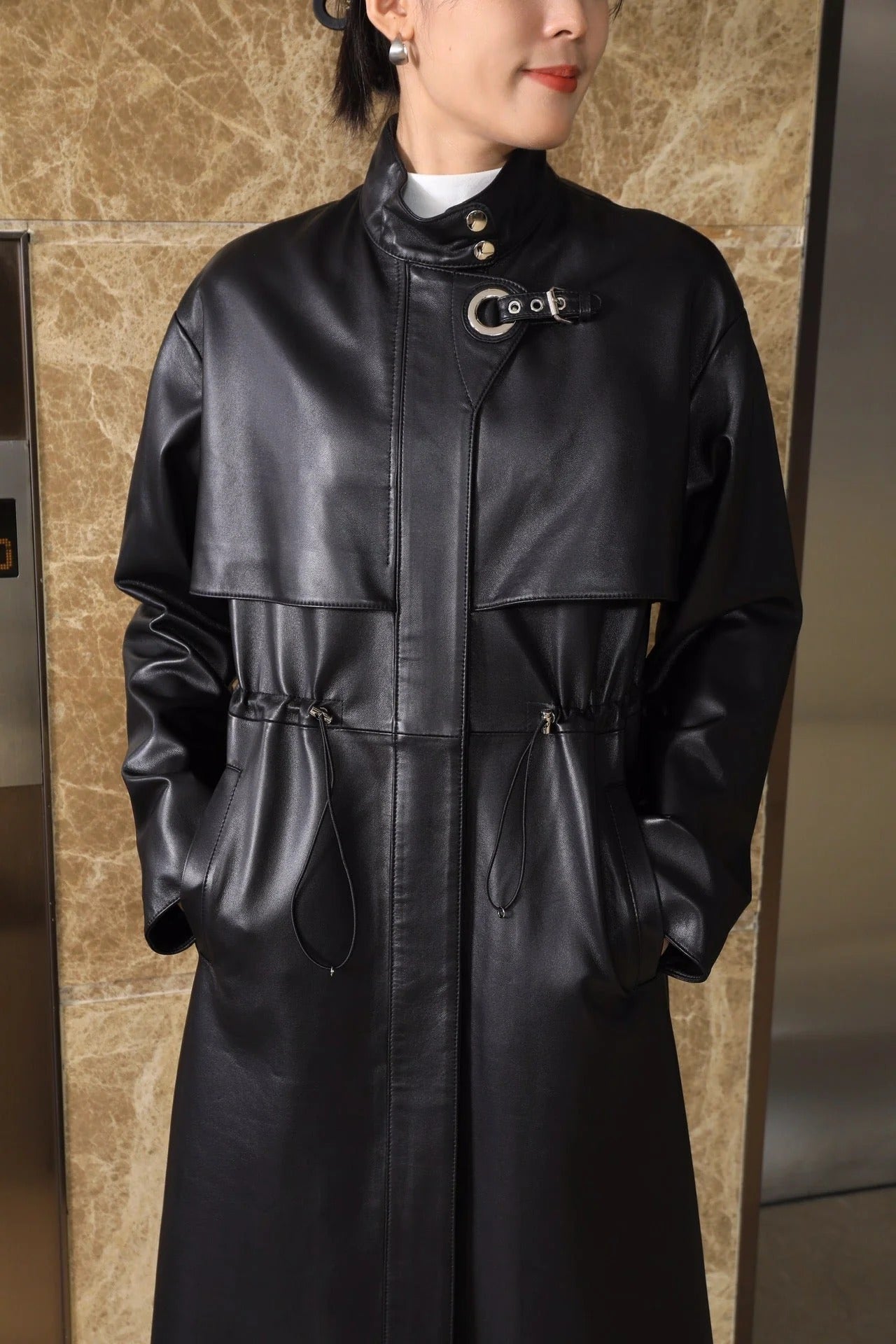 HERMES 25S LONG LEATHER JACKET WITH DRAWSTRING WAIST 170