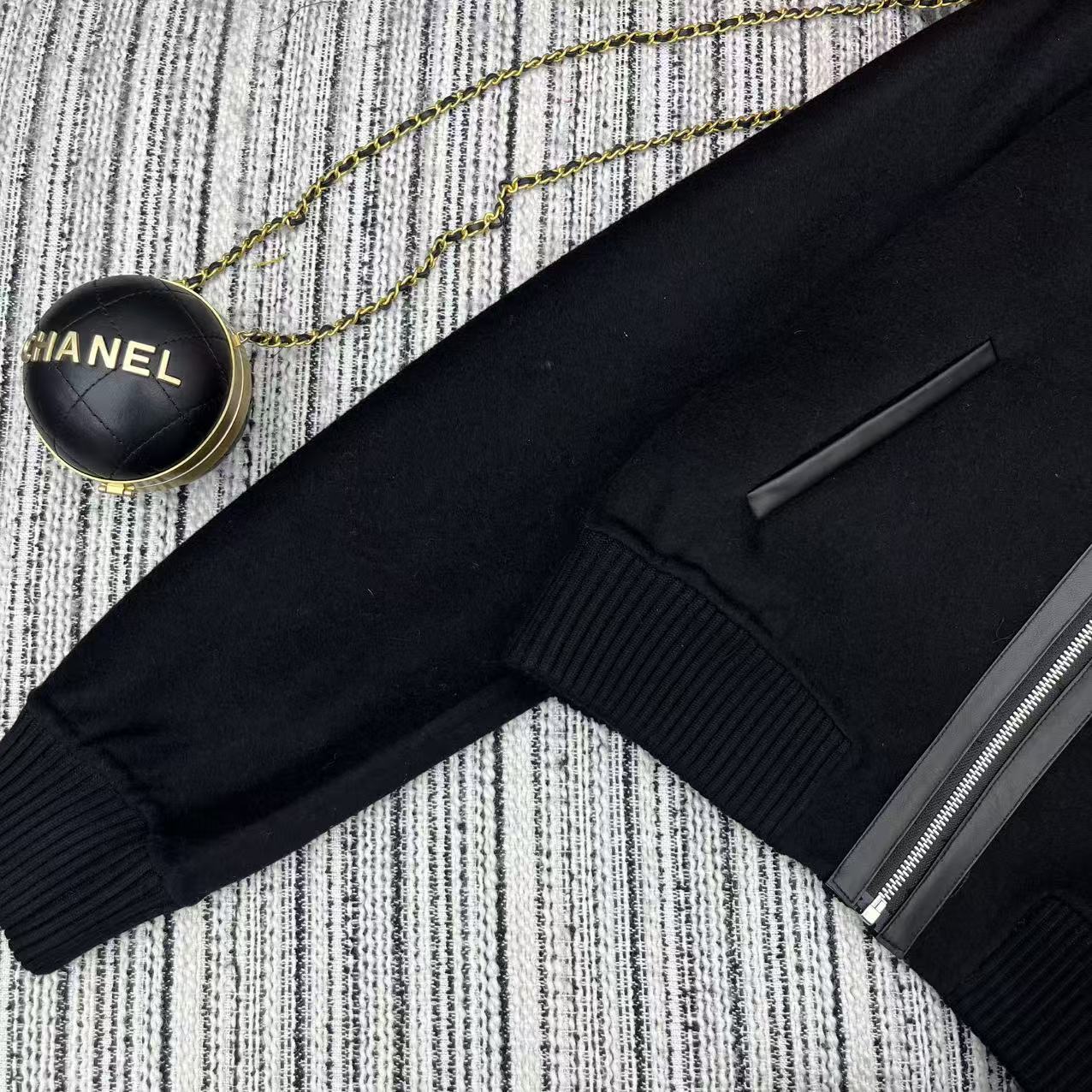 HM Patchwork Leather Lapel Double-faced Black Cashmere Jacket